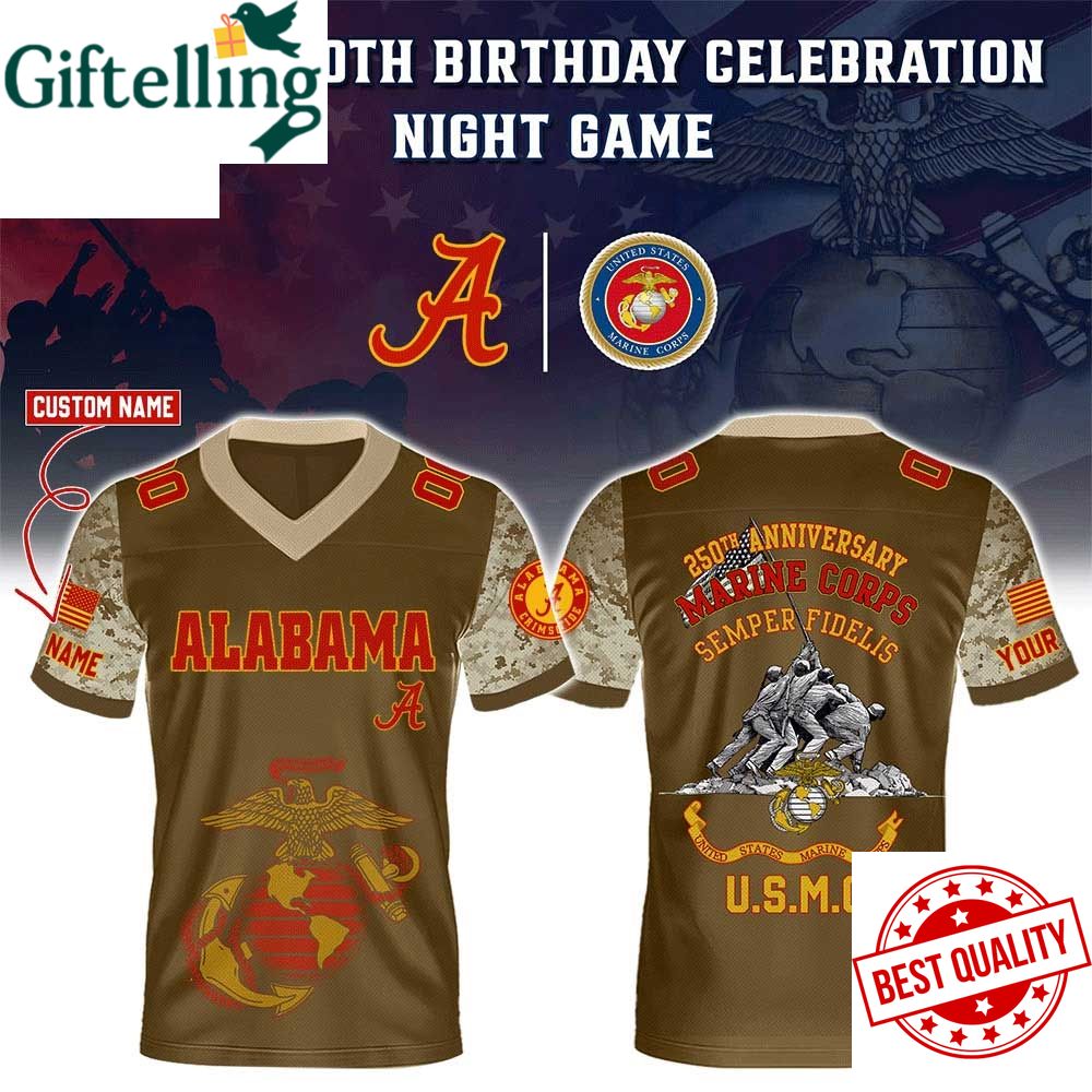 Order your Alabama Crimson Tide Marine Corps 250Th Anniversary Football Jersey at Giftelling! ❤️