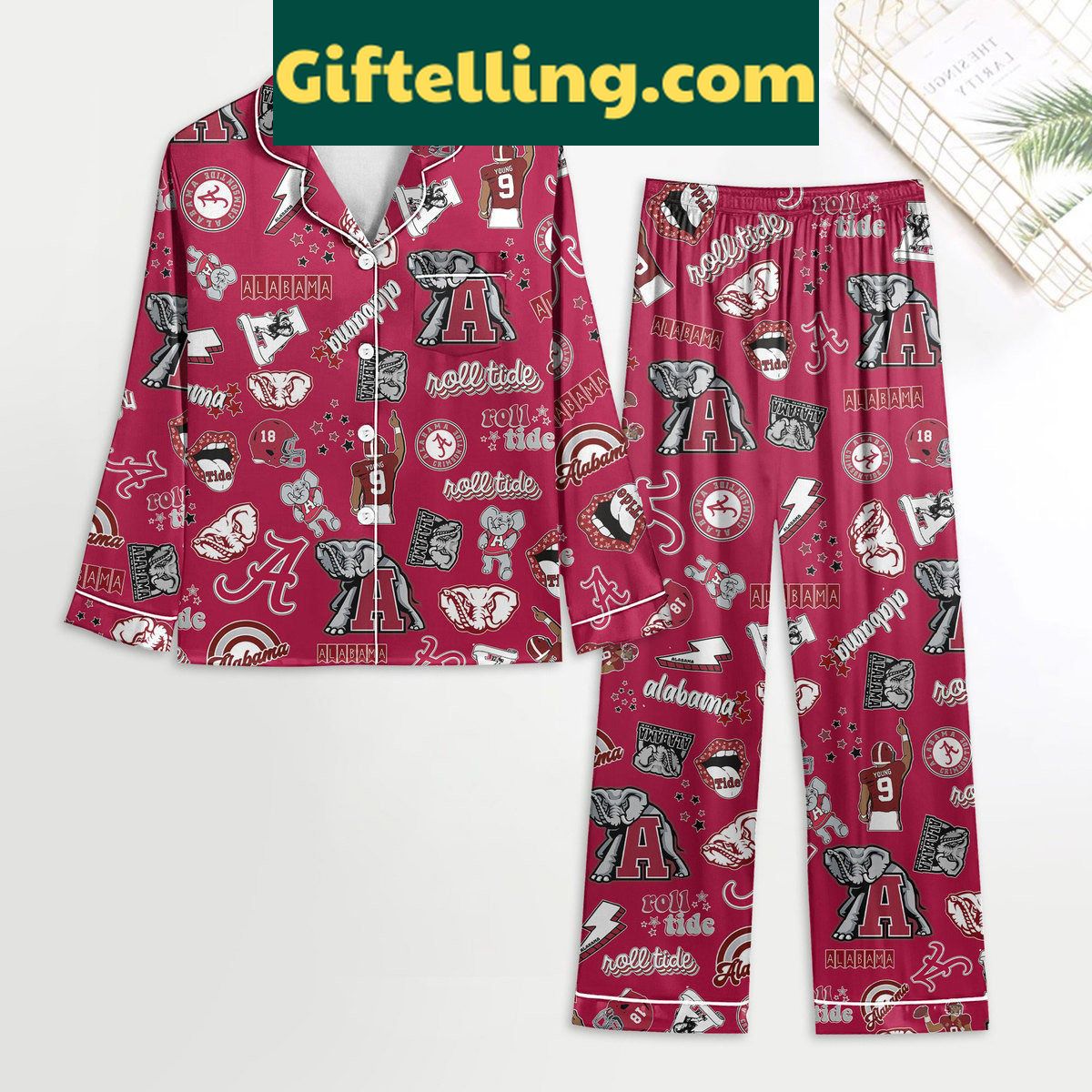 Order your Alabama Crimson Tide Roll Tide Red Polyester Pajamas Set - Official NCAA Licensed at Giftelling! ❤️