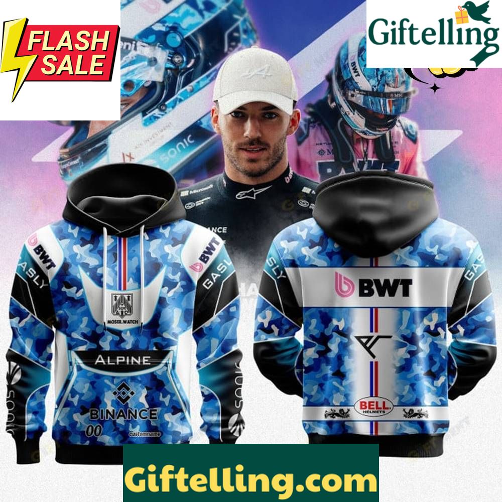 Order your Alpine Pierre Gasly Premium F1 Helmet Special Hoodie at Giftelling! ❤️