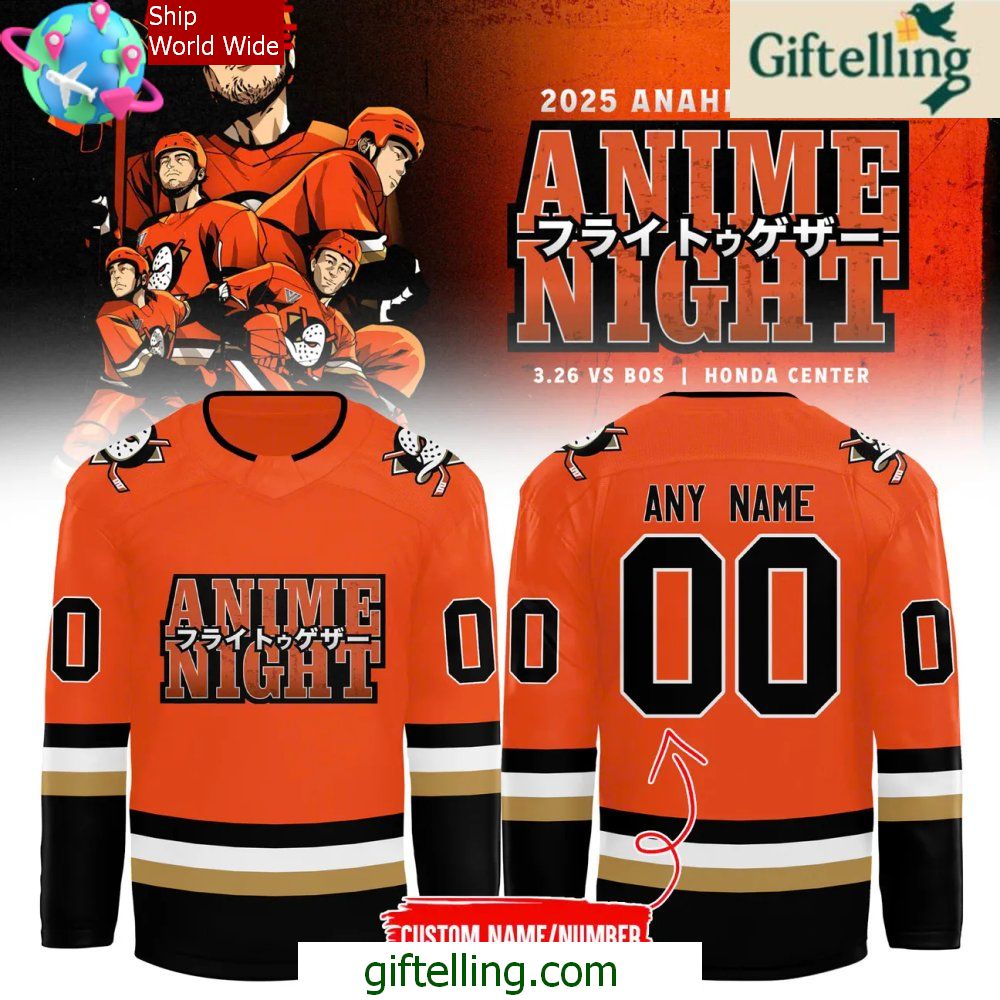 Order your Anaheim Ducks 2025 Anime Night Hockey Jersey at Giftelling! ❤️
