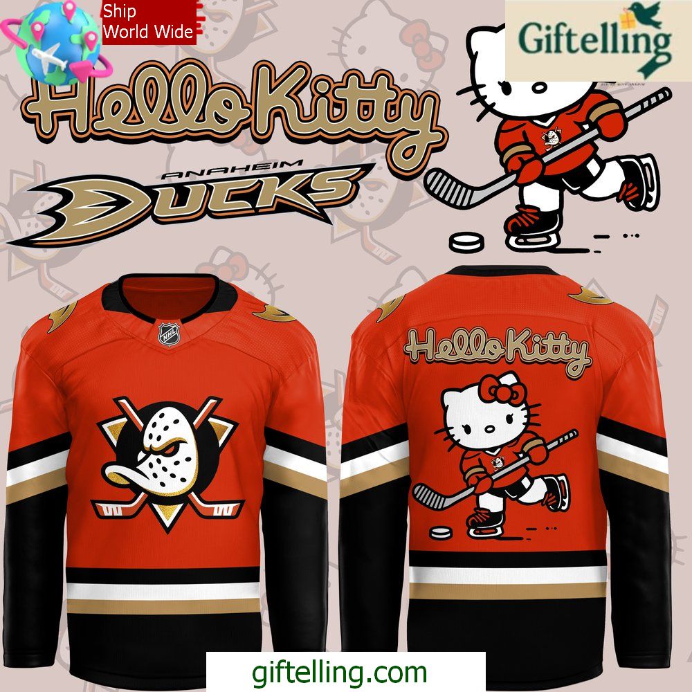 Order your Anaheim Ducks Hello Kitty Hockey Jersey Limited Edition at Giftelling! ❤️