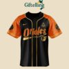 You’ve seen jerseys, and you’ve seen cartoons—but you’ve never seen anything like this. Featuring an animated take on the classic Orioles colorway, this piece is a vibrant homage to pop culture nostalgia and big-league style. The base is bold orange with navy accents, while the pinstripes are creatively distorted to reflect Springfield-style zaniness. The front carries the Orioles wordmark in bubble-text font, outlined with subtle Simpsons-style yellow. On the left sleeve? A patch with Homer mid-duff-swig, wearing a foam finger. And the back? Number 87—a nod to the show’s 1987 debut—with "Simpsons" in curved font above it. Subtle or loud? It's both.
