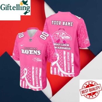 Order your Baltimore Ravens Pink Ribbon Nfl Support Breast Cancer Awareness Football Jersey at Giftelling! ❤️