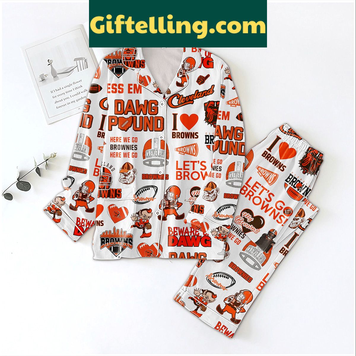 Order your Beware Of Dawg: Cleveland Browns Polyester Pajamas Set for Men & Women at Giftelling! ❤️