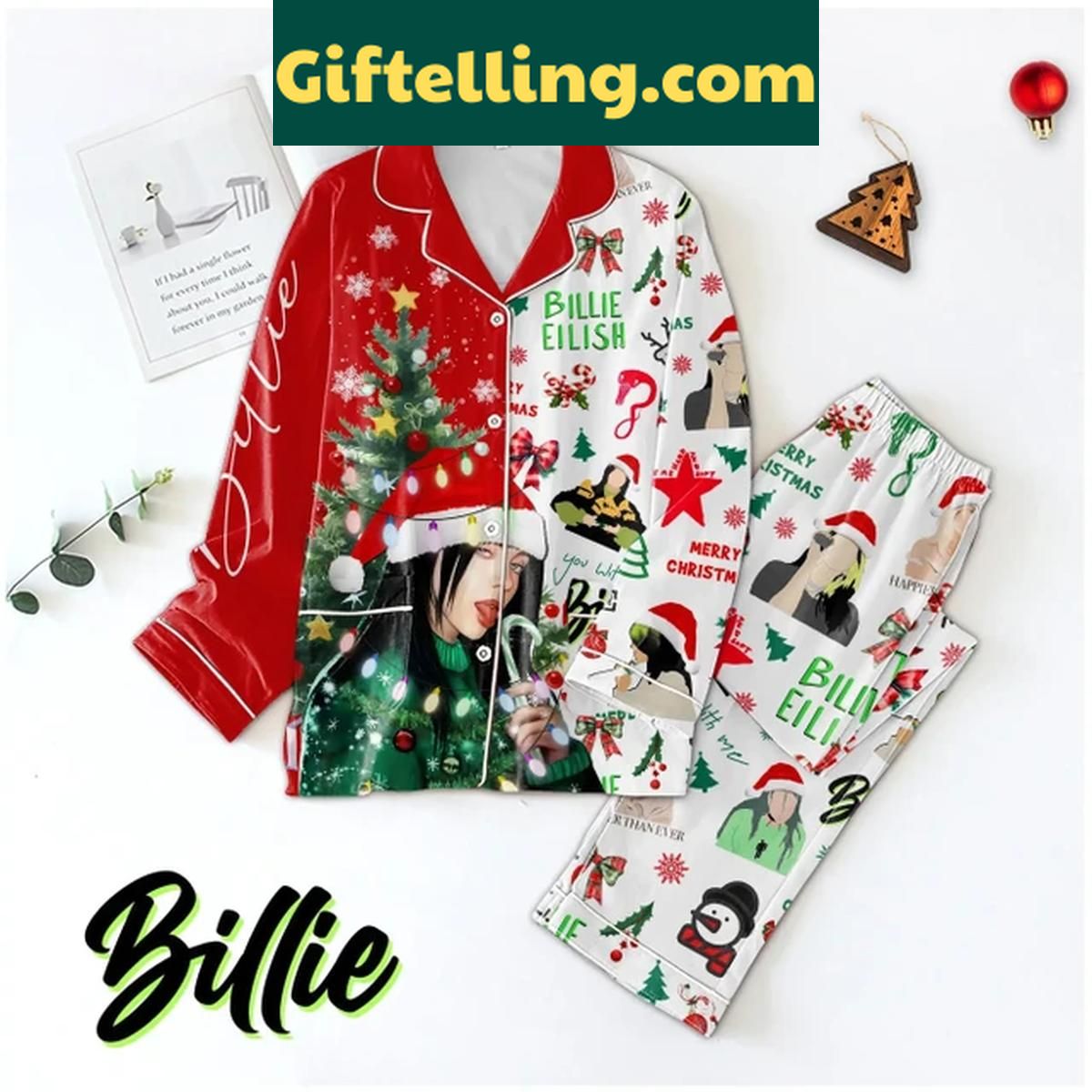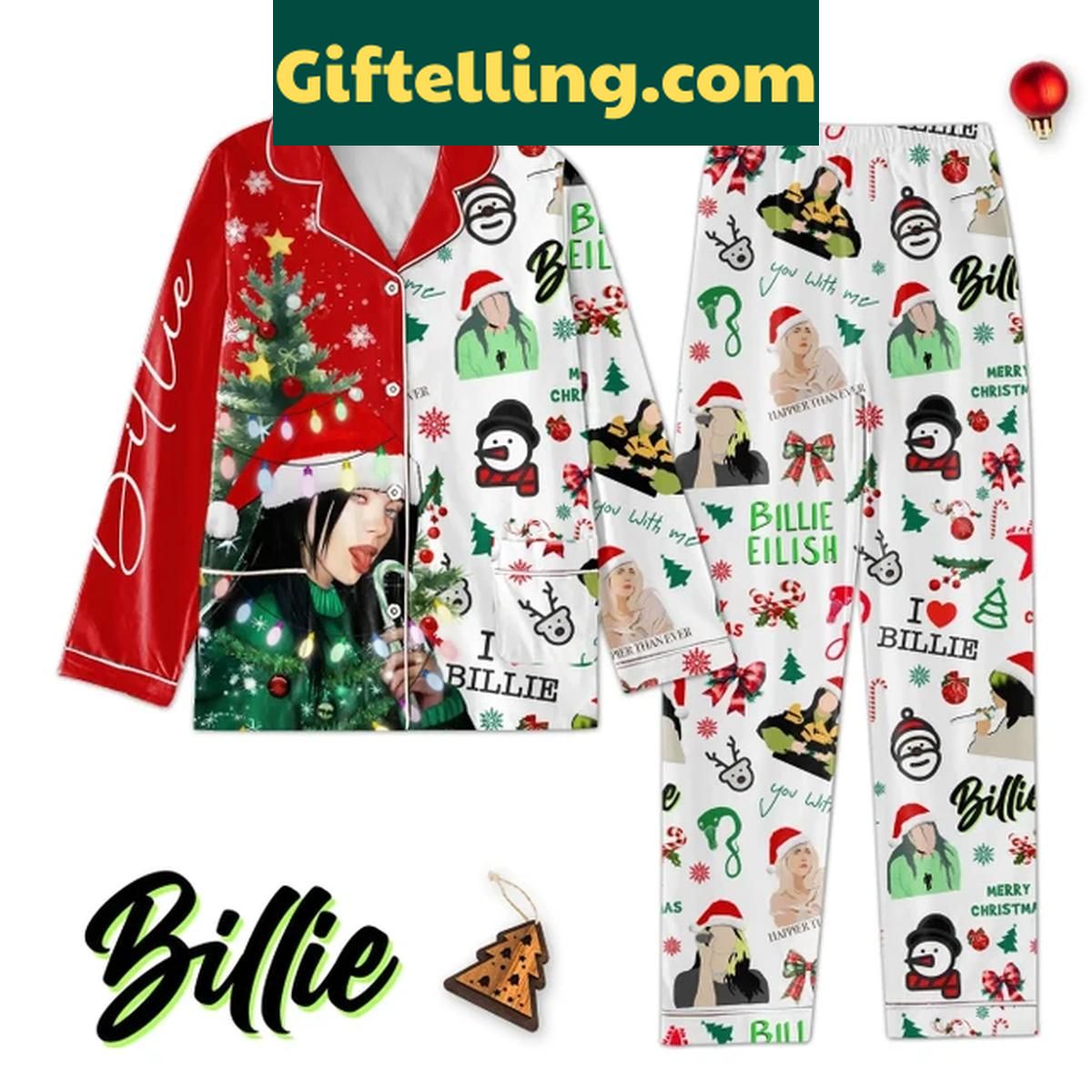 Celebrate the festive season with Billie Eilish I Love Eilish Merry Christmas 2024 Polyester Pajamas