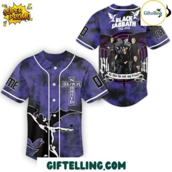 Set against a deep midnight black backdrop, this jersey’s color scheme draws inspiration from Black Sabbath’s raw and gothic aesthetic. Blood-red striping along the sleeves nods to the dark themes of their early records, while metallic silver trim echoes the album art from classics like “Paranoid” and “Heaven and Hell.” The front features “SABBATH” in high-contrast gothic lettering, embroidered with metallic thread that catches the light like a spotlight at a stadium encore. The back proudly displays “68–25” in oversized numerals, celebrating the band’s birth year and their enduring relevance in 2025. The sleeve crest? A stitched replica of the flying demon icon that has followed the band from tour posters to tattooed arms worldwide. It’s a detail diehard fans will recognize instantly.