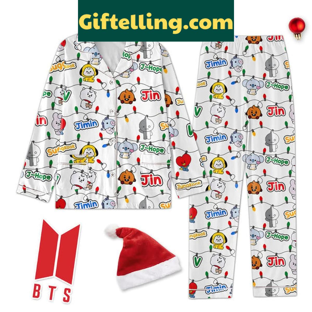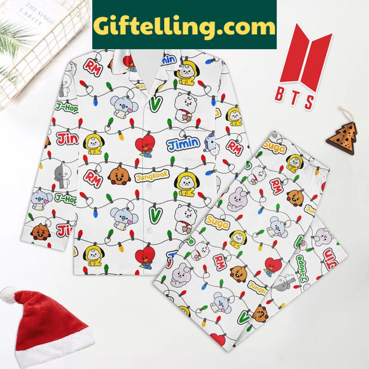 Order your BTS Christmas Lights Polyester Pajamas Set for Couples and Fans at Giftelling! ❤️