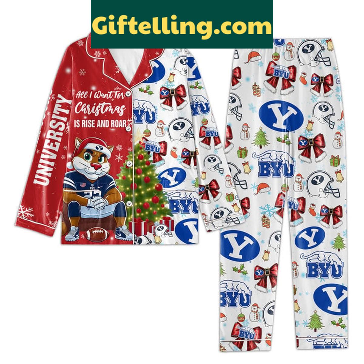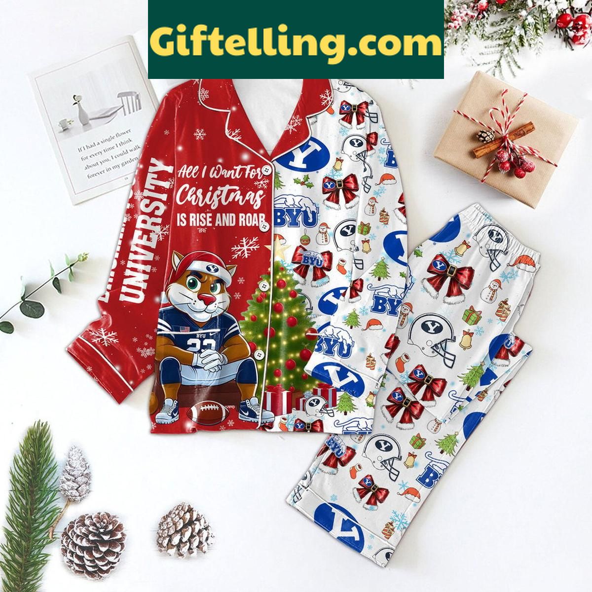 BYU Cougars All I Want For Christmas Is Rise And Roar 2024 Polyester Pajamas Set – Holiday Cheer