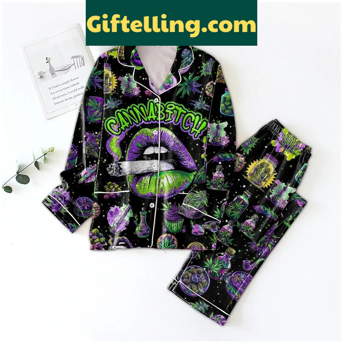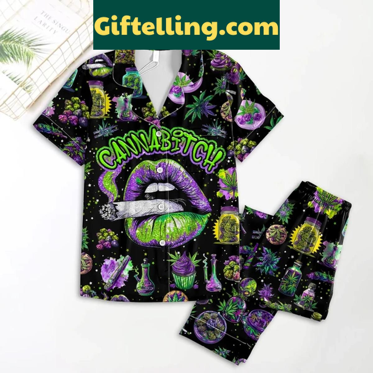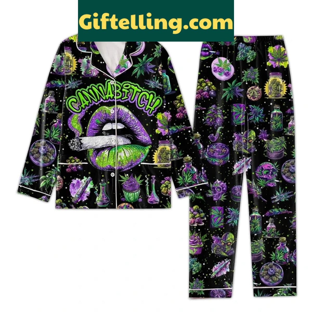 Order your Cannabitch Magical Galaxy Polyester Pajamas Set - Magical Nighttime Cosiness at Giftelling! ❤️
