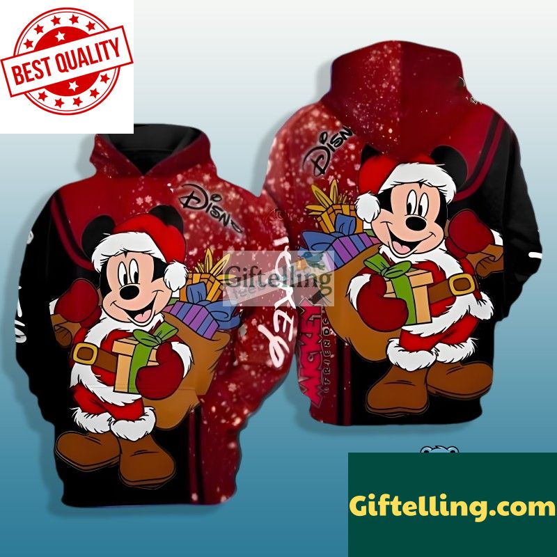 Order your Christmas Mickey Mouse Santa 3D Hoodie Red Puff Print at Giftelling! ❤️
