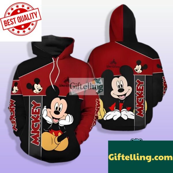 Christmas Mickey Mouse Smile Face 3D Hoodie Red Black Design details: