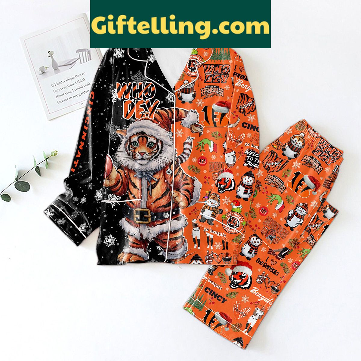 Order your Cincinnati Bengals Who Dey Welcome To The Jungle Pajamas Set - Official NFL Apparel at Giftelling! ❤️