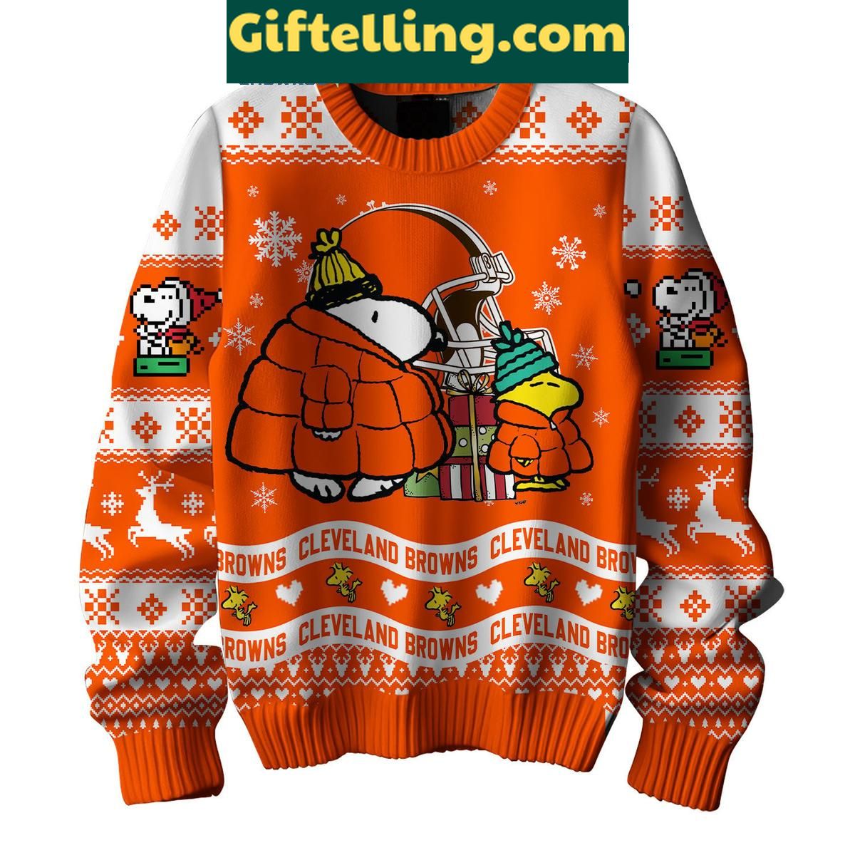 Order your Cleveland Browns Peanuts Snoopy Ugly Sweater Christmas Gift for Football Fans at Giftelling! ❤️