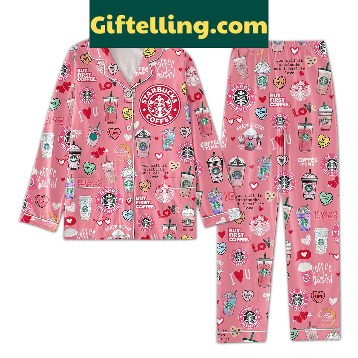 Order your Coffee Obsessed Pajamas by Starbucks: Pink Polyester Pajama Set at Giftelling! ❤️