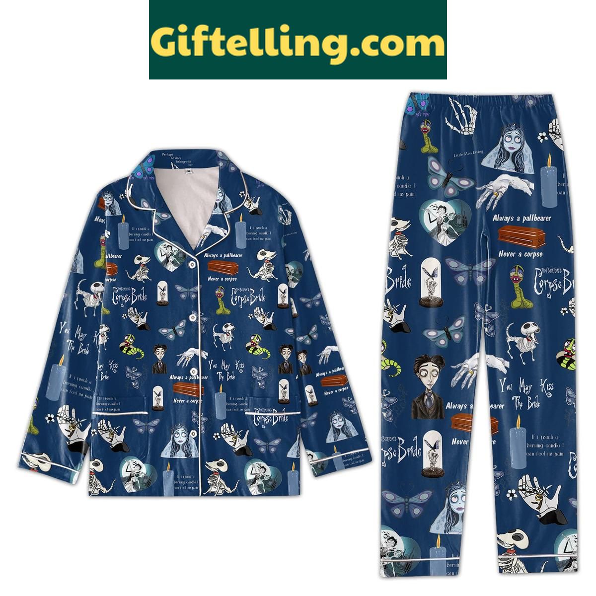 Order your Corpse Bride Tim Burton Navy Pajamas Set 2024 - Unique Gift at Giftelling! ❤️