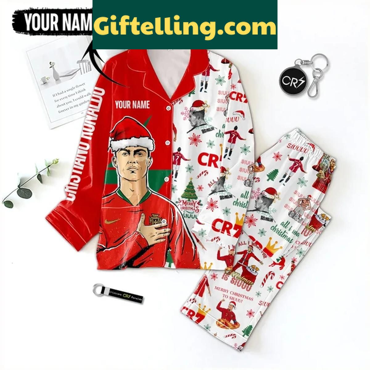 Order your Cristiano Ronaldo CR7 Merry Christmas 2024 Personalized Polyester Pajamas Set at Giftelling! ❤️