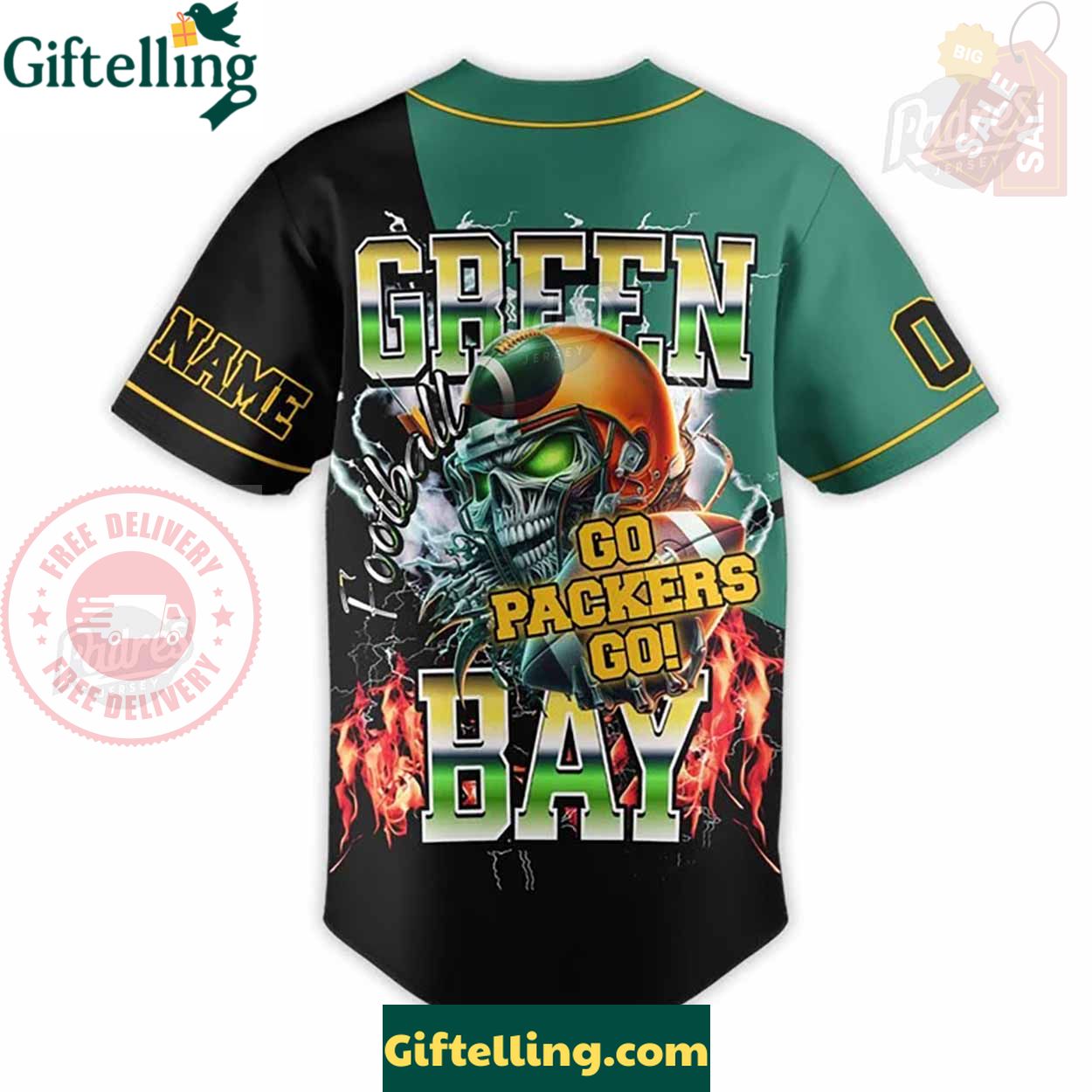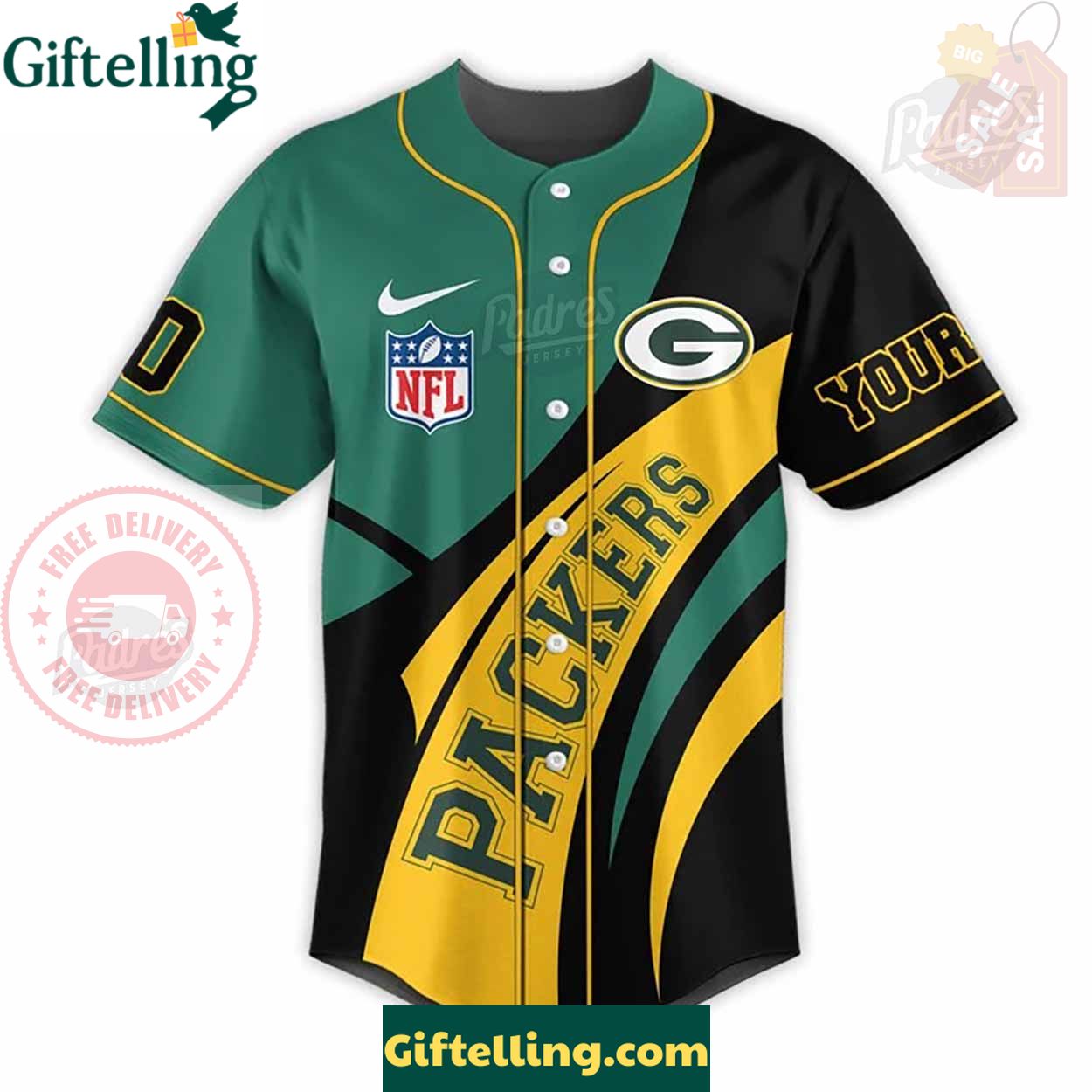 Order your Custom Green Bay Packers NFL Baseball Jersey Style at Giftelling! ❤️