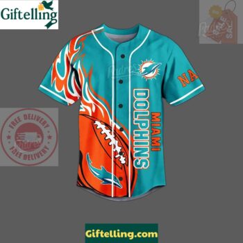 Order your Custom Miami Dolphins Fins Up Baseball Jersey at Giftelling! ❤️