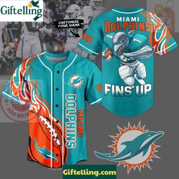 Order your Custom Miami Dolphins Fins Up Baseball Jersey at Giftelling! ❤️