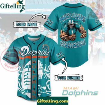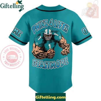 Order your Custom NFL Miami Dolphins Phins 4Life Beast Mode Baseball Jersey at Giftelling! ❤️