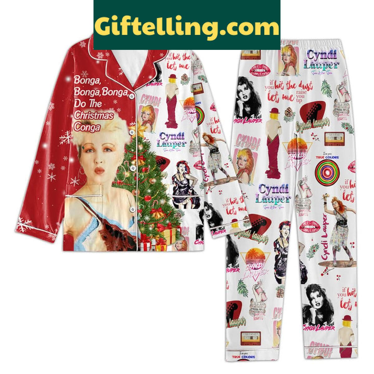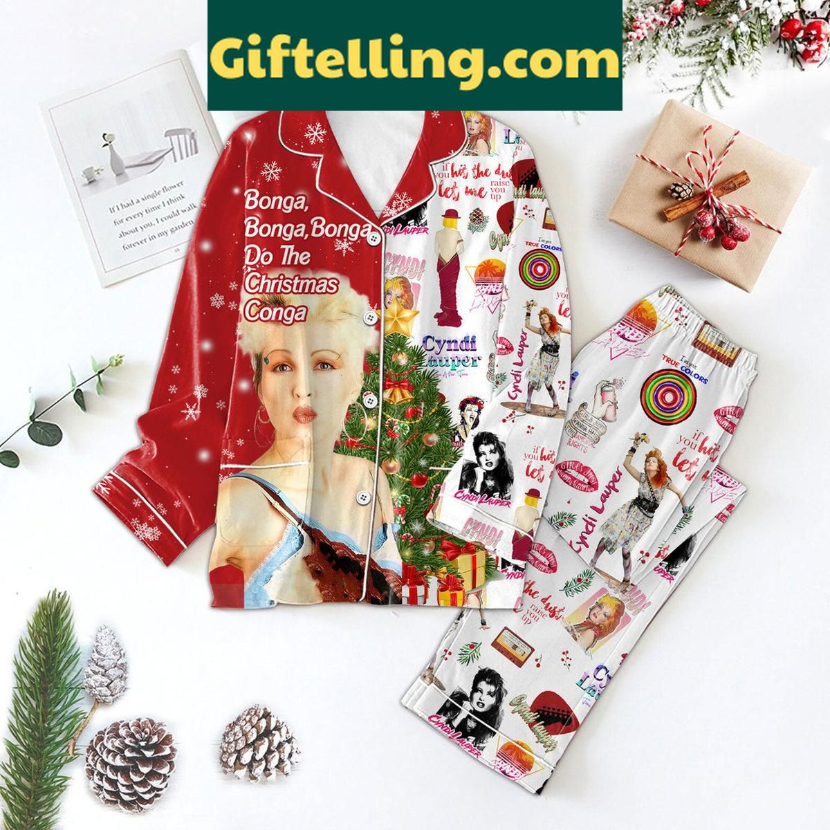 Cyndi Lauper Bonga Do The Christmas Conga Polyester Pajamas Set