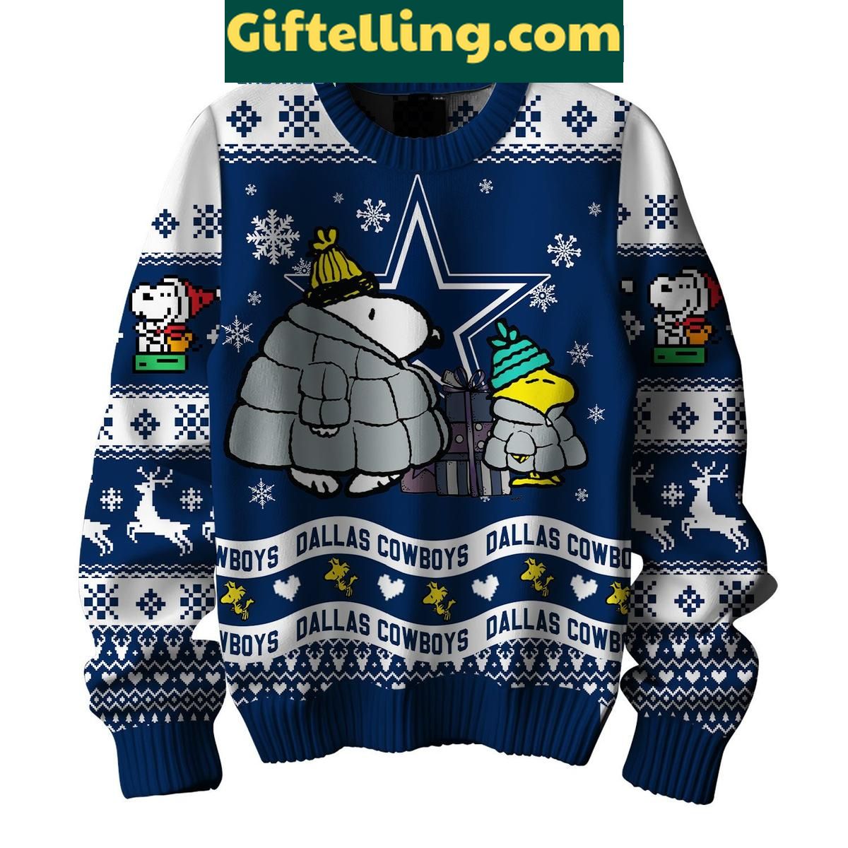 Order your Dallas Cowboys Peanuts Snoopy Ugly Sweater Christmas Gift - NFL Fans' Delight at Giftelling! ❤️