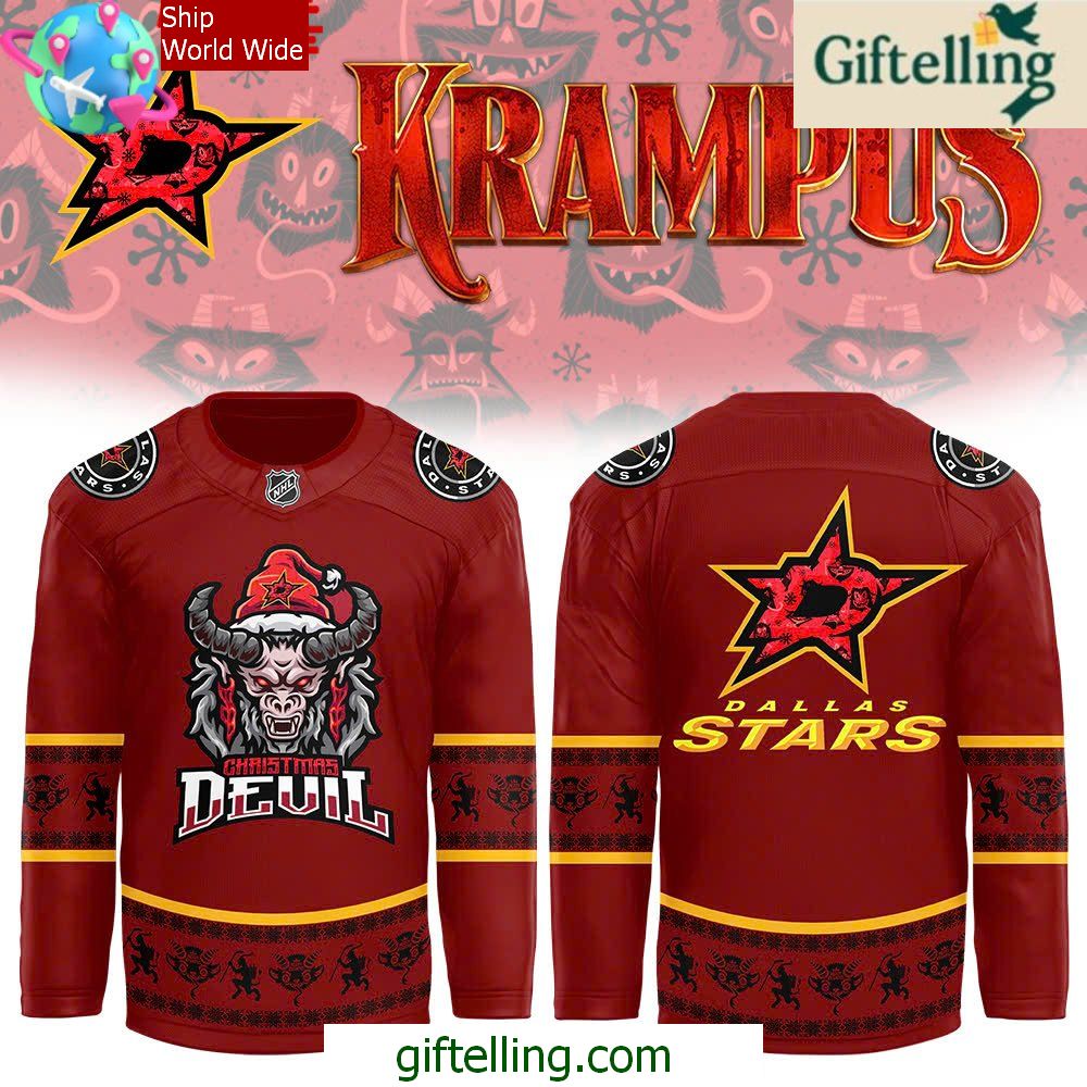 Order your Dallas Stars Krampus Christmas Hockey Jersey Holiday Gift at Giftelling! ❤️