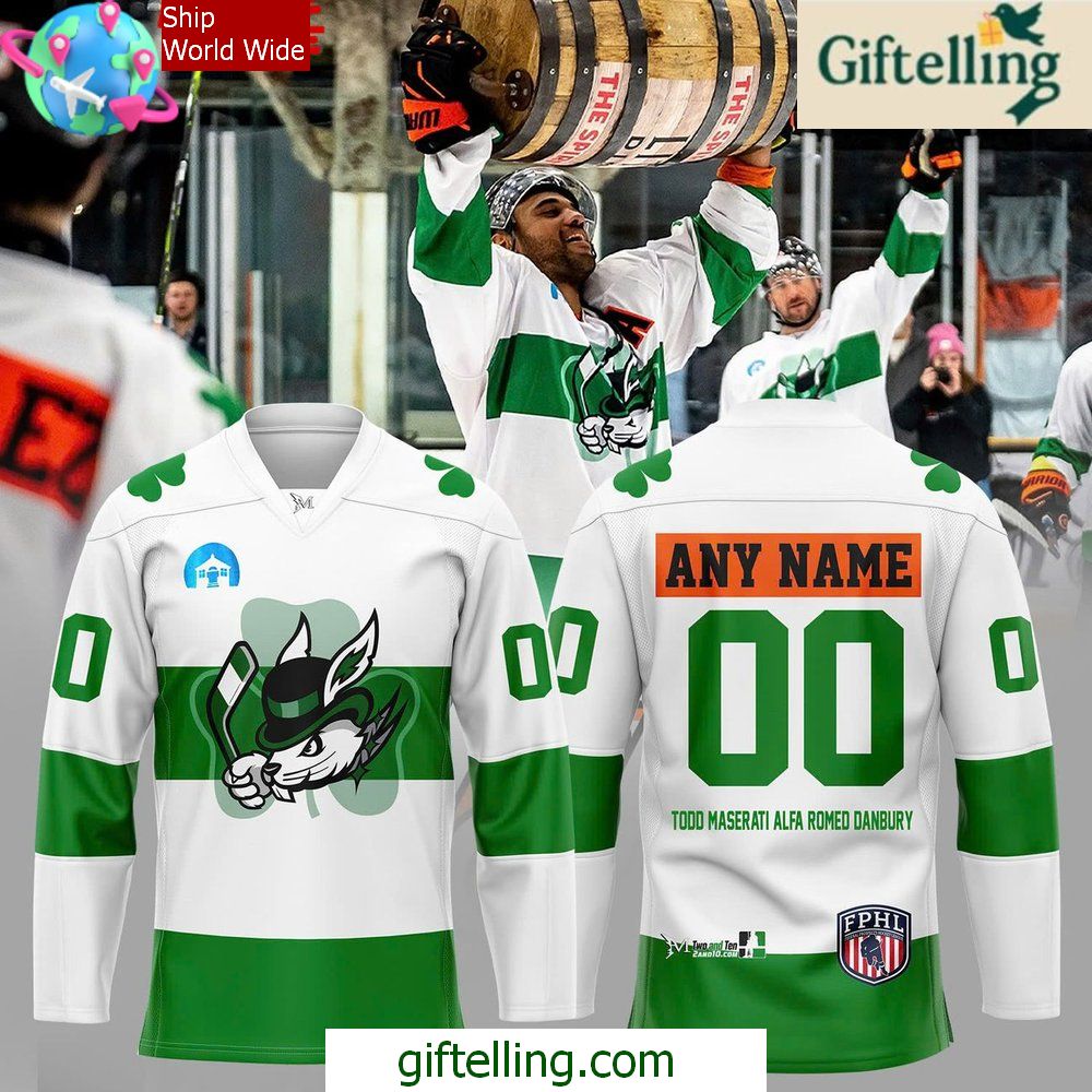 Order your Danbury Hat Tricks St Patricks Day 2025 Hockey Jersey at Giftelling! ❤️