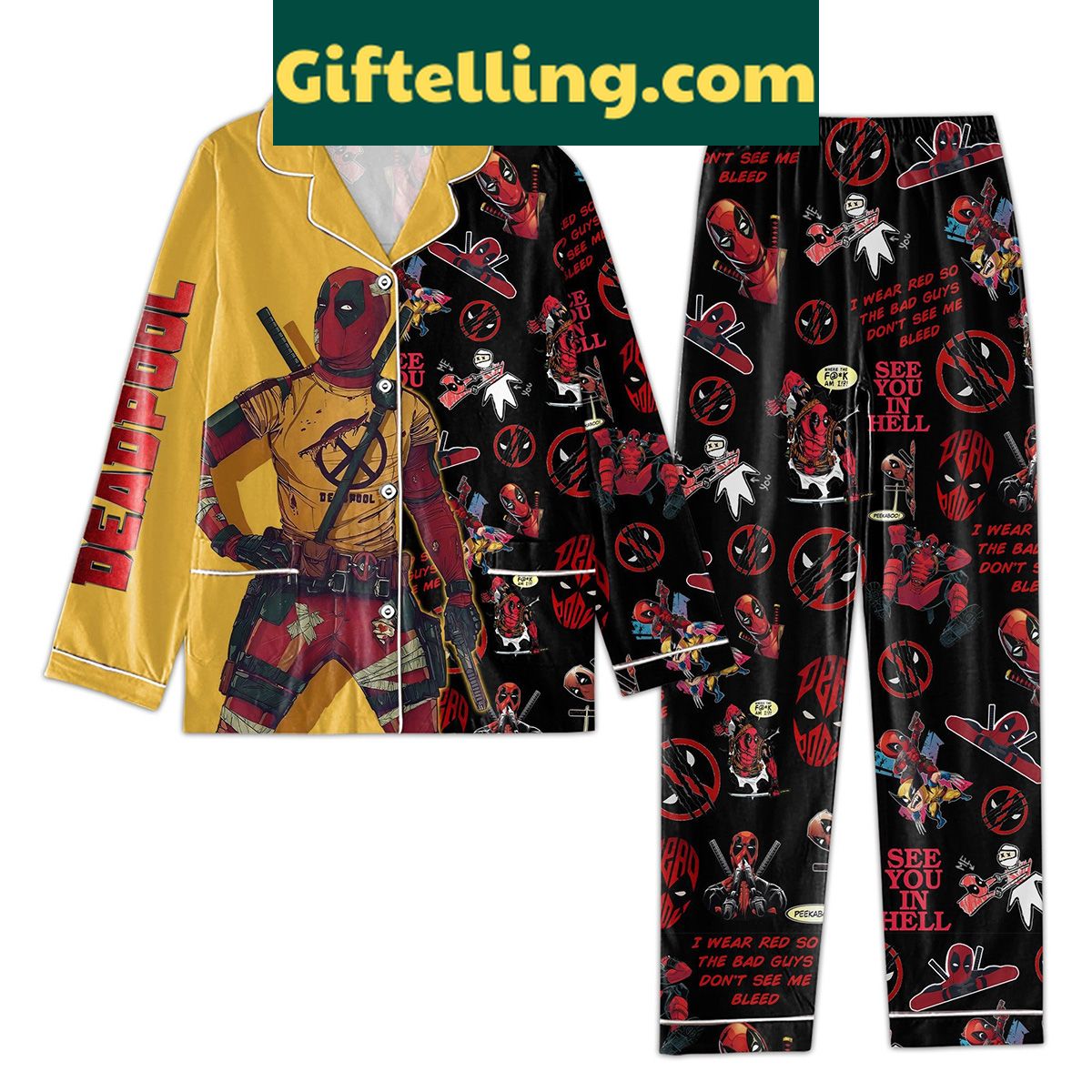 Deadpool See You In Hell Pajamas Set – Yellow Version Polyester