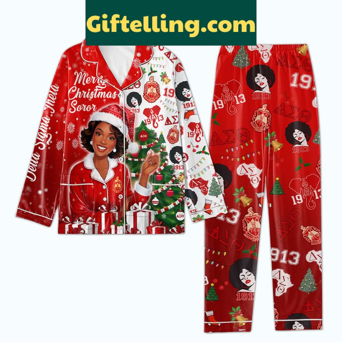 Delta Sigma Theta Merry Christmas Soror 2024 Polyester Pajamas Set