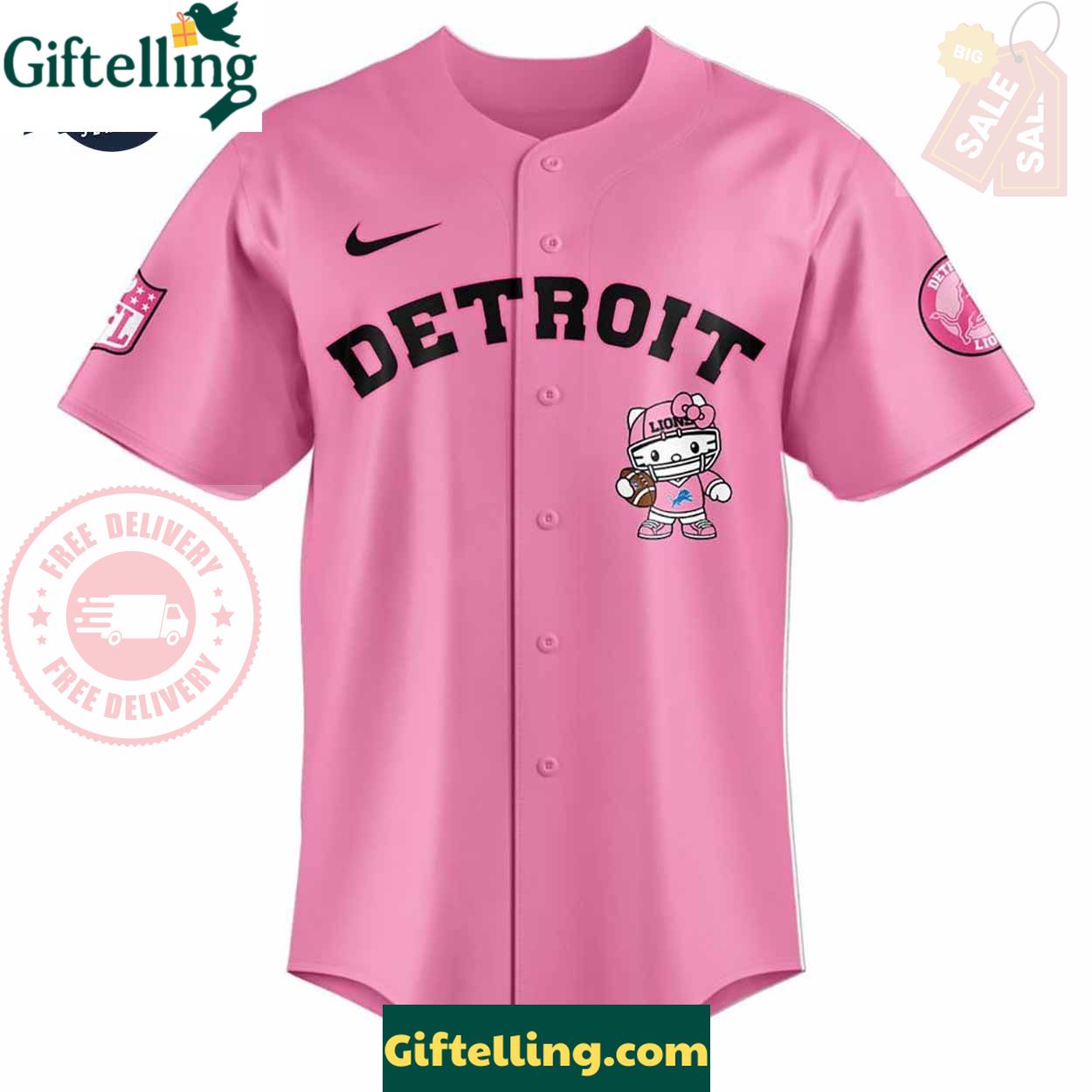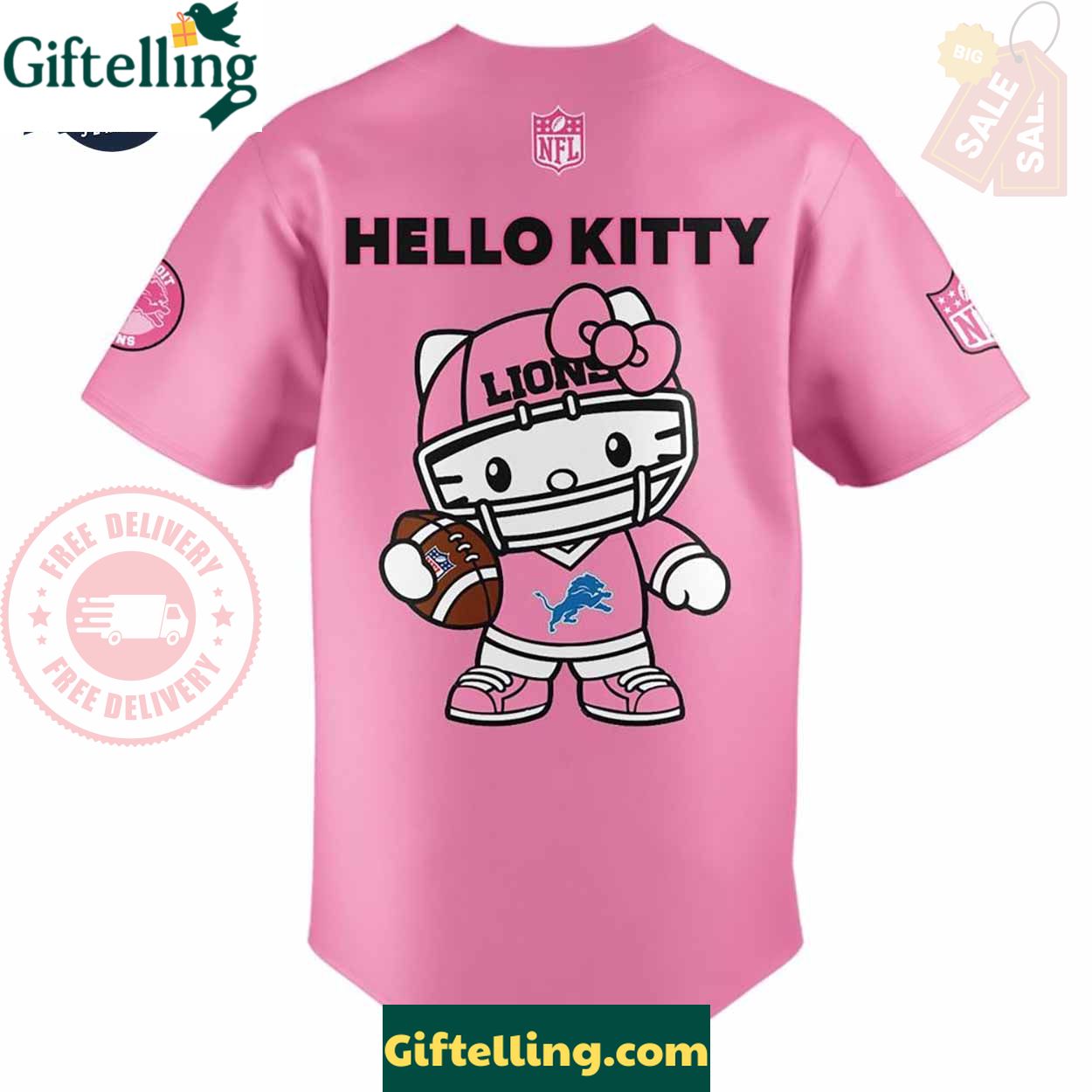 Order your Detroit Lions Hello Kitty Pink NFL Baseball Jersey at Giftelling! ❤️