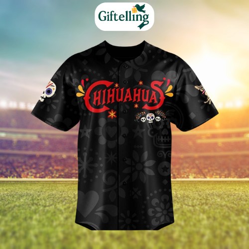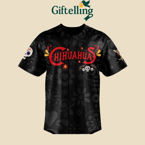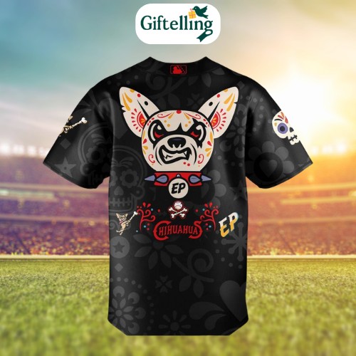 The artwork on this jersey is anything but generic. Front and center sits a sugar skull dog—a colorful reimagining of the El Paso Chihuahuas’ mascot, complete with candle-lit eyes and delicate face paint. The shoulders and sleeves are adorned with blooming cempasúchil (marigolds), echoing the altars of home celebrations. Look closely and you’ll find stylized bones hidden in the trim, playful nods to the skeletal figures often seen dancing during Día de los Muertos parades. On the back: bold block numbers wrapped in swirling papel picado motifs, letting you personalize your piece with name and number if desired. The balance of urban edge and folkloric charm is unmistakable.The perfect piece for game day, festivals, or everyday