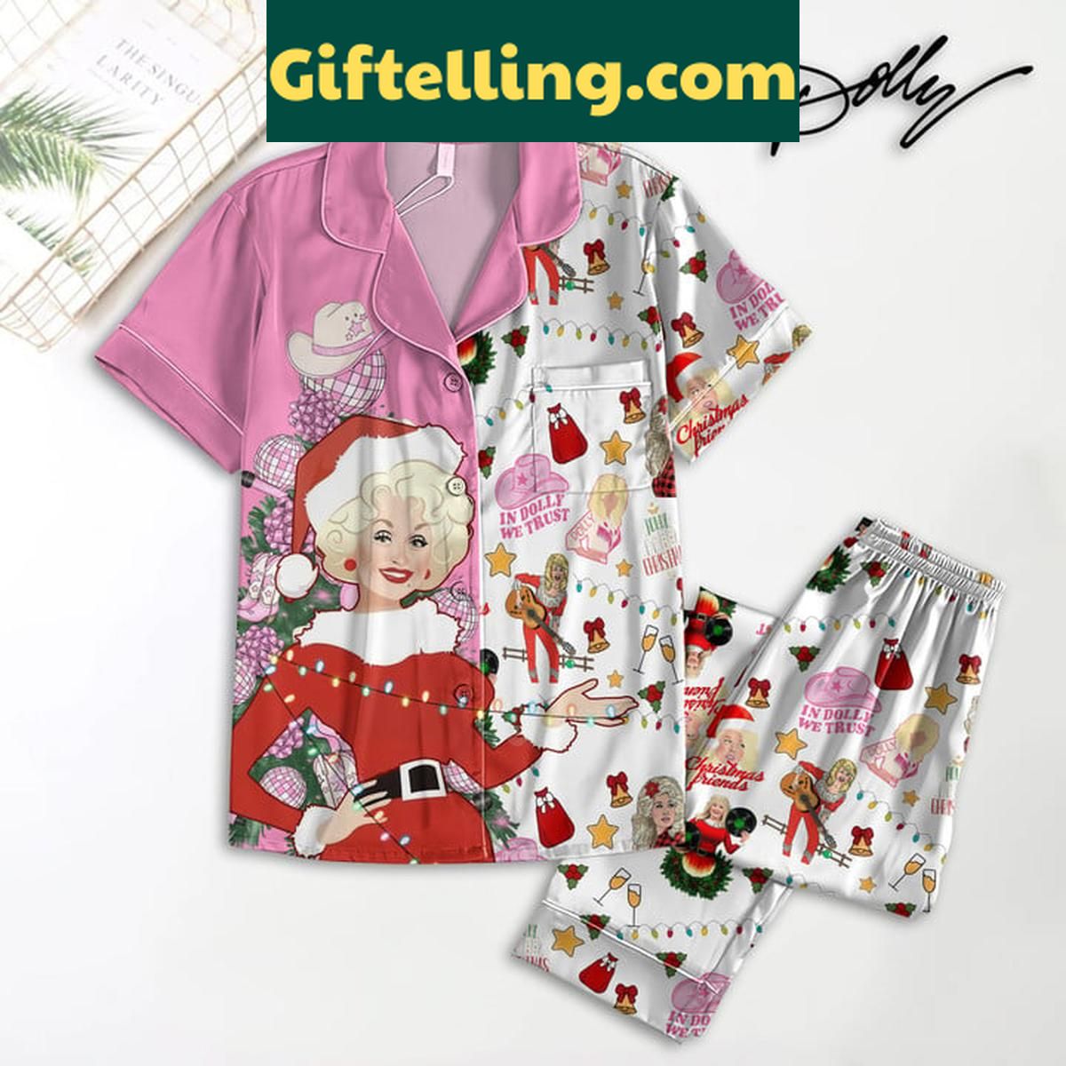 Order your Dolly Parton Christmas Pajamas Set - In Dolly We Trust Polyester PJs at Giftelling! ❤️