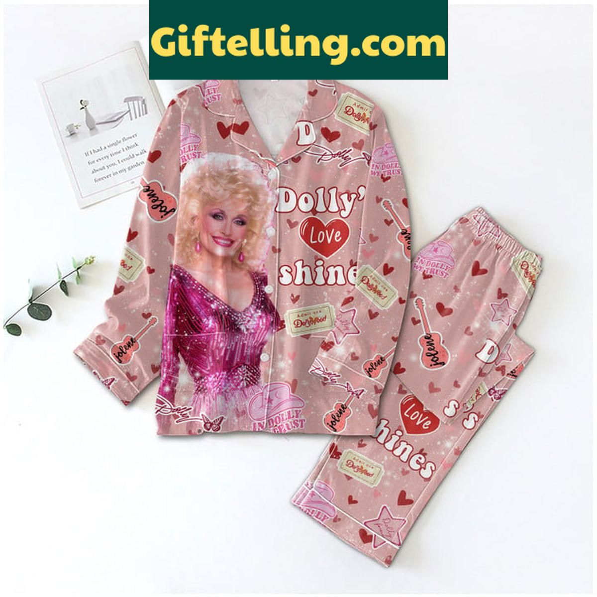 Make a statement with the Dolly Parton Dolly Love Shine Admit One Polyester Pajamas Set. This set is perfect for gift-giving or as a special treat for yourself. With its unique design and comfortable fabric, it's sure to be a hit. So why wait? Head to Giftelling.com today to get your hands on this amazing sleepwear set and experience the magic of Dolly Parton for yourself.