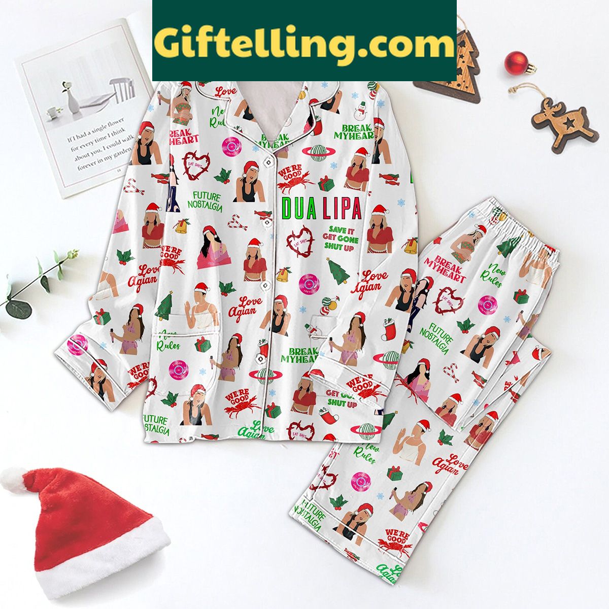 Order your Dua Lipa Break My Heart Love Again Pajamas Set for Women - Lounge in Style at Giftelling! ❤️