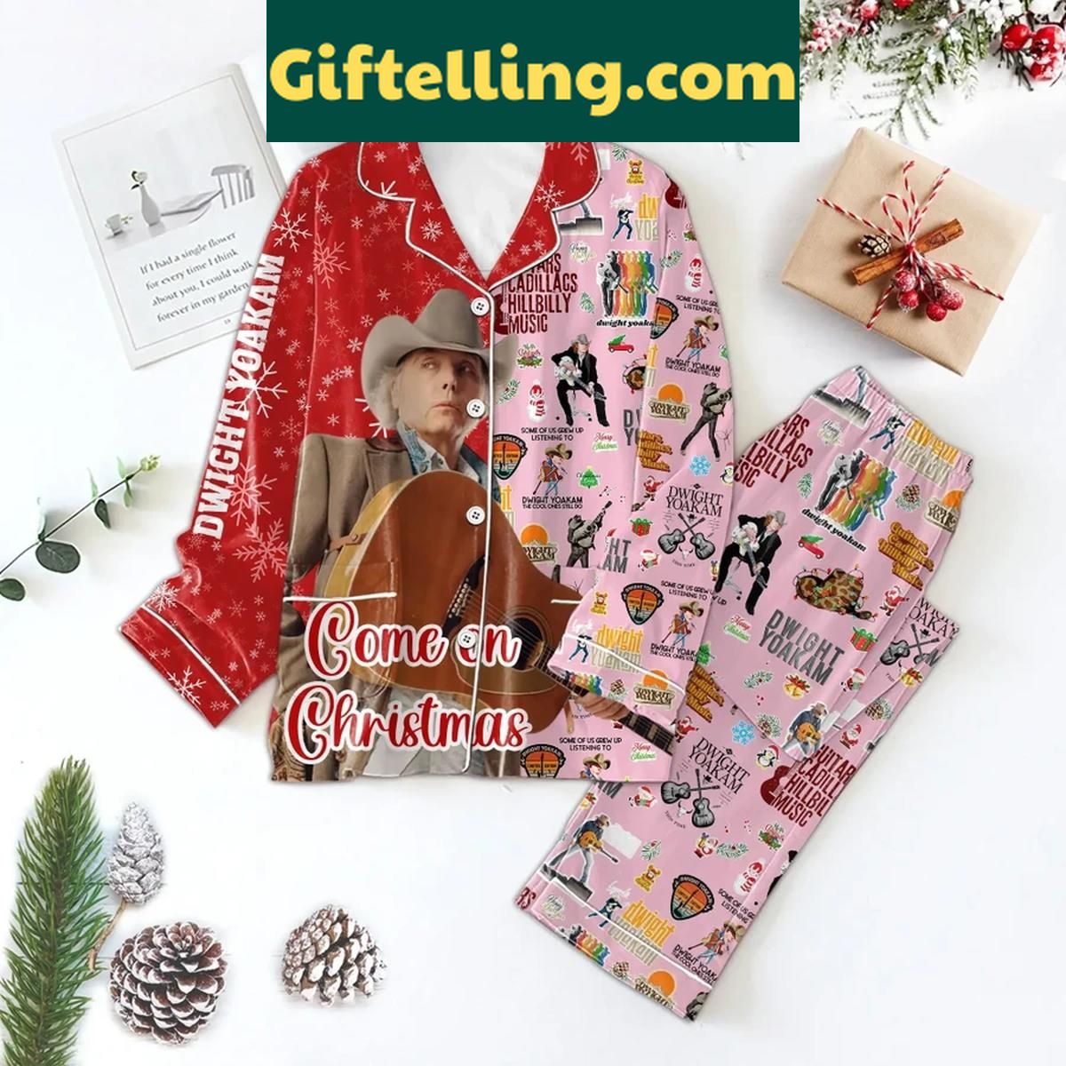 Get into the holiday spirit with Dwight Yoakam Come On Christmas 2024 Polyester Pajamas Set