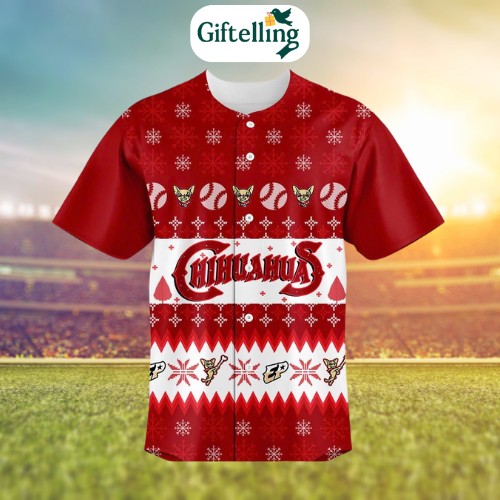 This El Paso Chihuahuas 2025 Christmas jersey is a merry masterpiece. Designed exclusively for the July special, it features:- A festive red and emerald green color palette