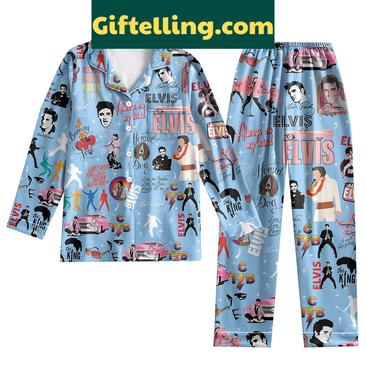Elvis Presley Silk Pajamas Set – King of Rock and Roll Blue Design