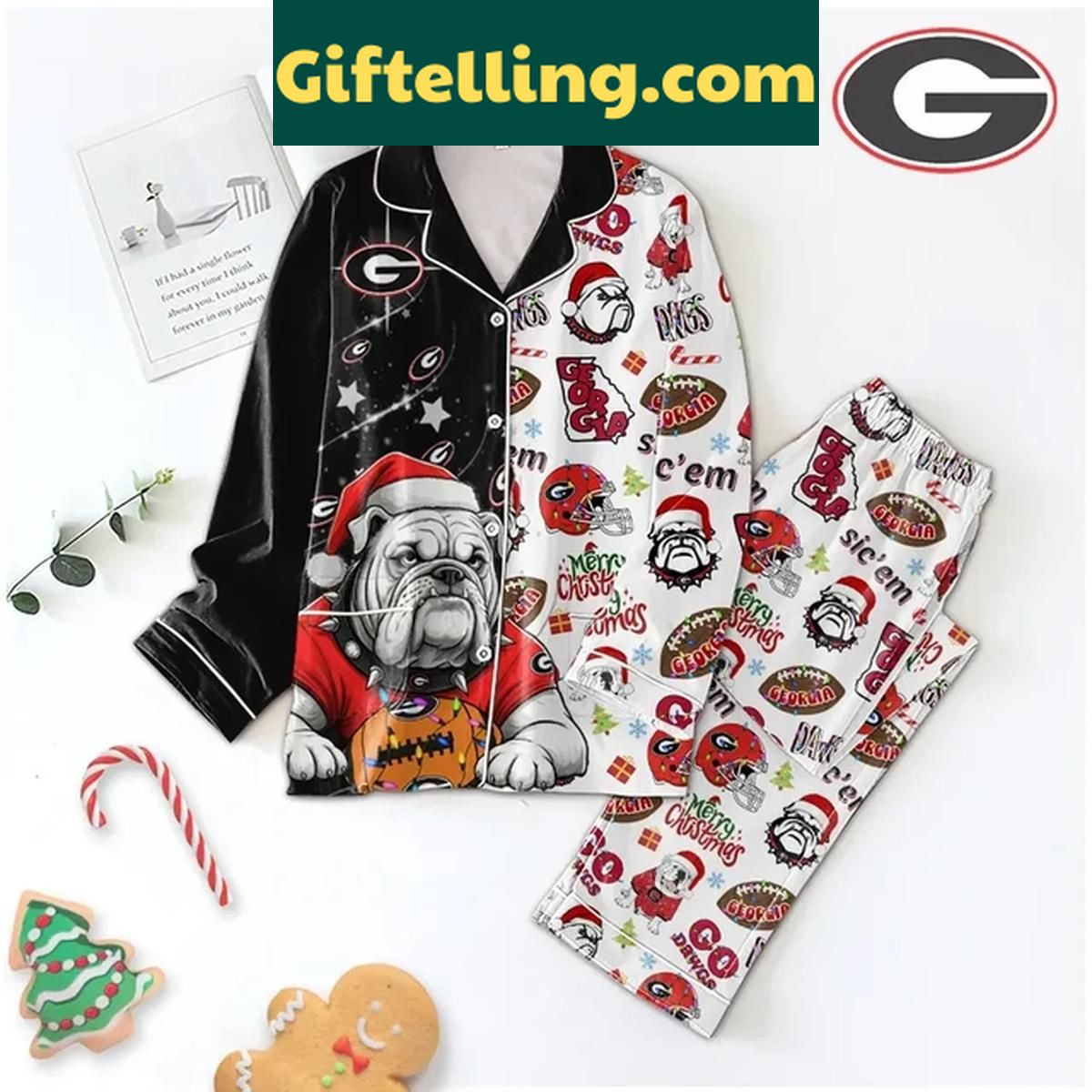 Order your Georgia Bulldogs Merry Christmas Football Pajamas Set - Go Dawgs Polyester PJs at Giftelling! ❤️