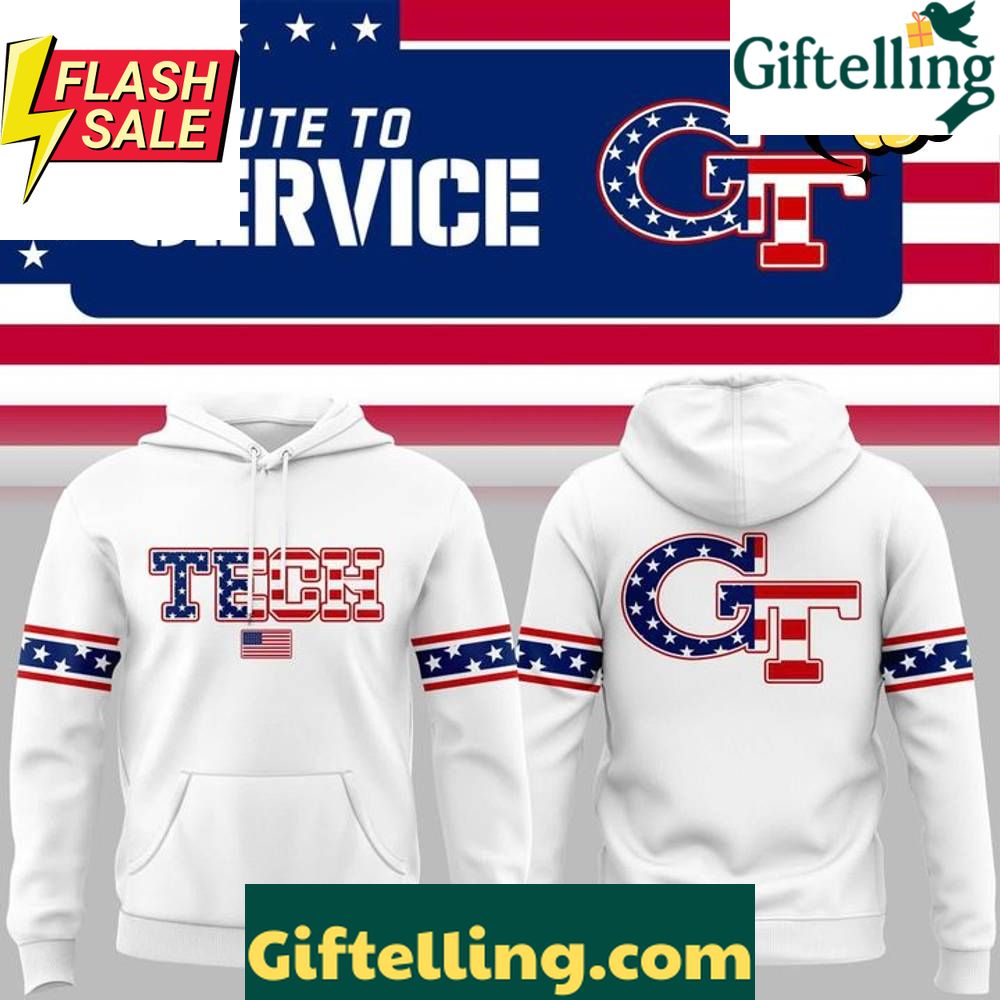 Order your Georgia Tech Yellow Jackets 2025 Military Appreciation Salute To Service Wordmark Hoodie at Giftelling! ❤️