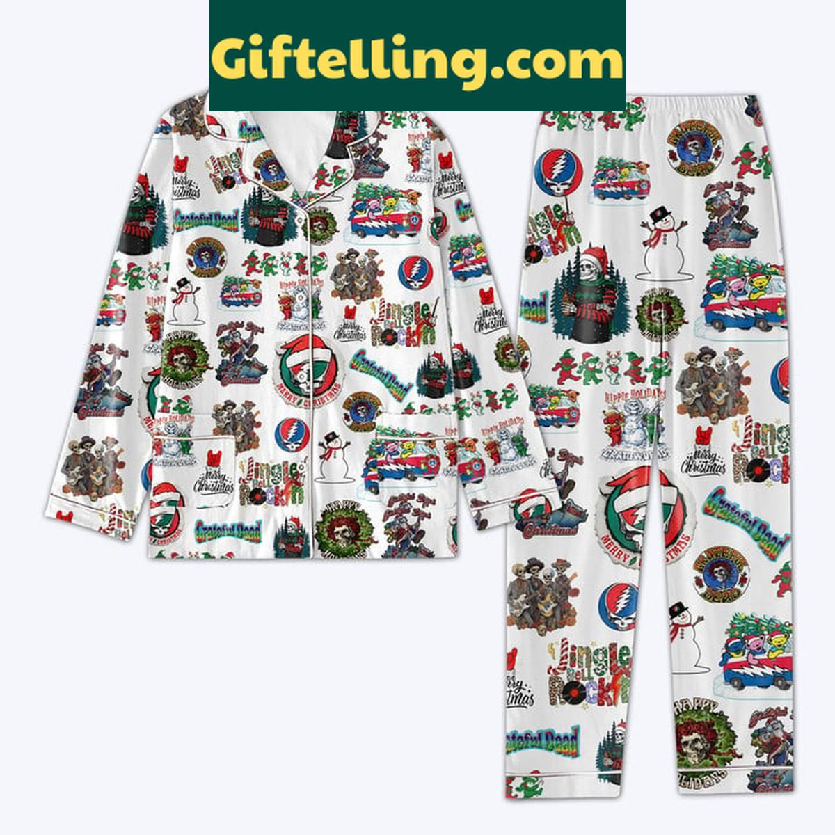 Order your Grateful Dead Merry Christmas 2024 Polyester Pajamas Set for Festive Deadheads at Giftelling! ❤️