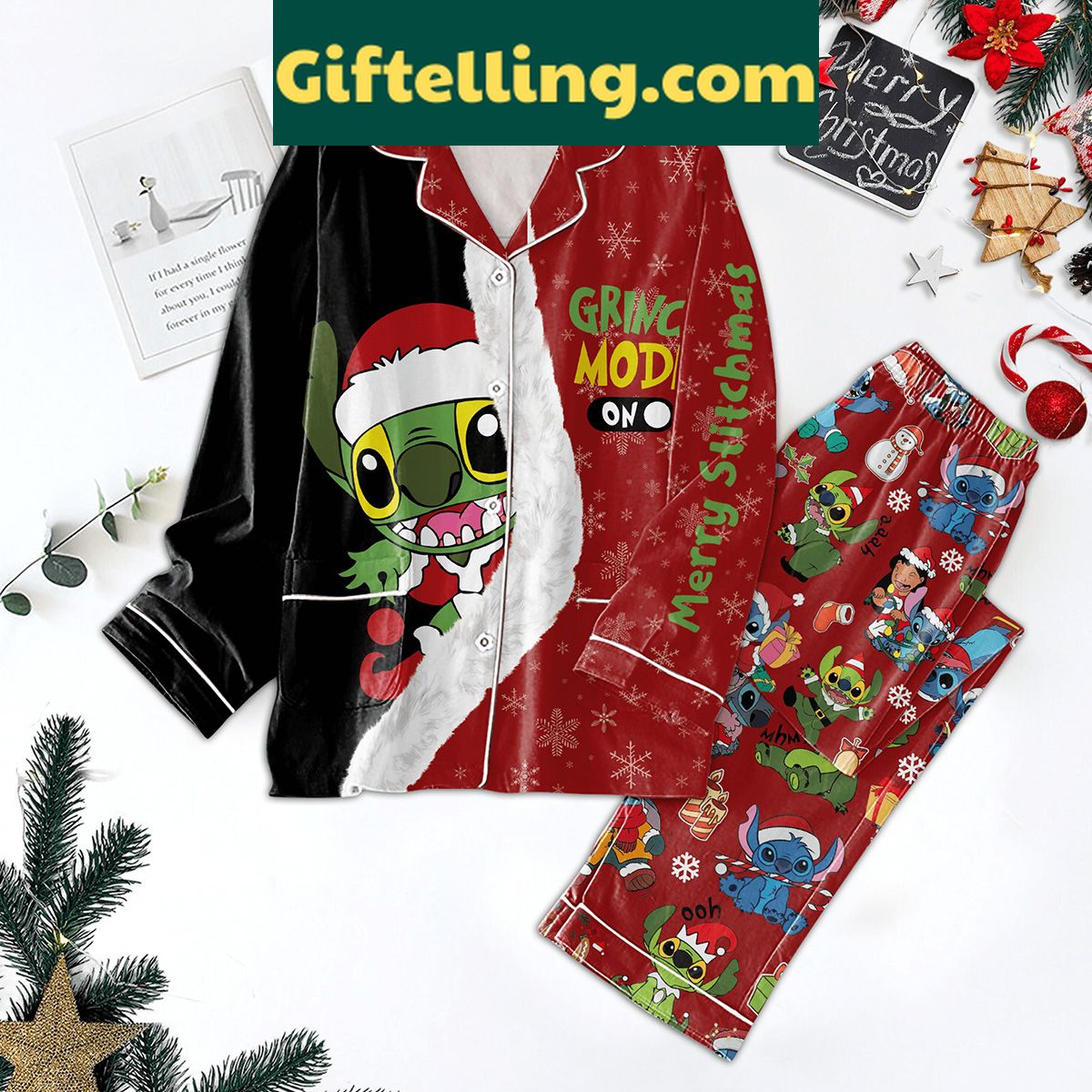Order your Grinch Mode On Merry Stitchmas Pajamas Set - Ugly Christmas PJs at Giftelling! ❤️