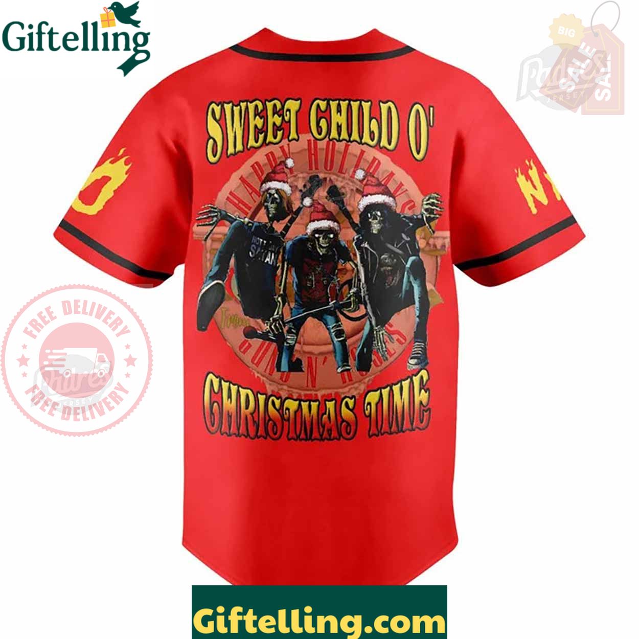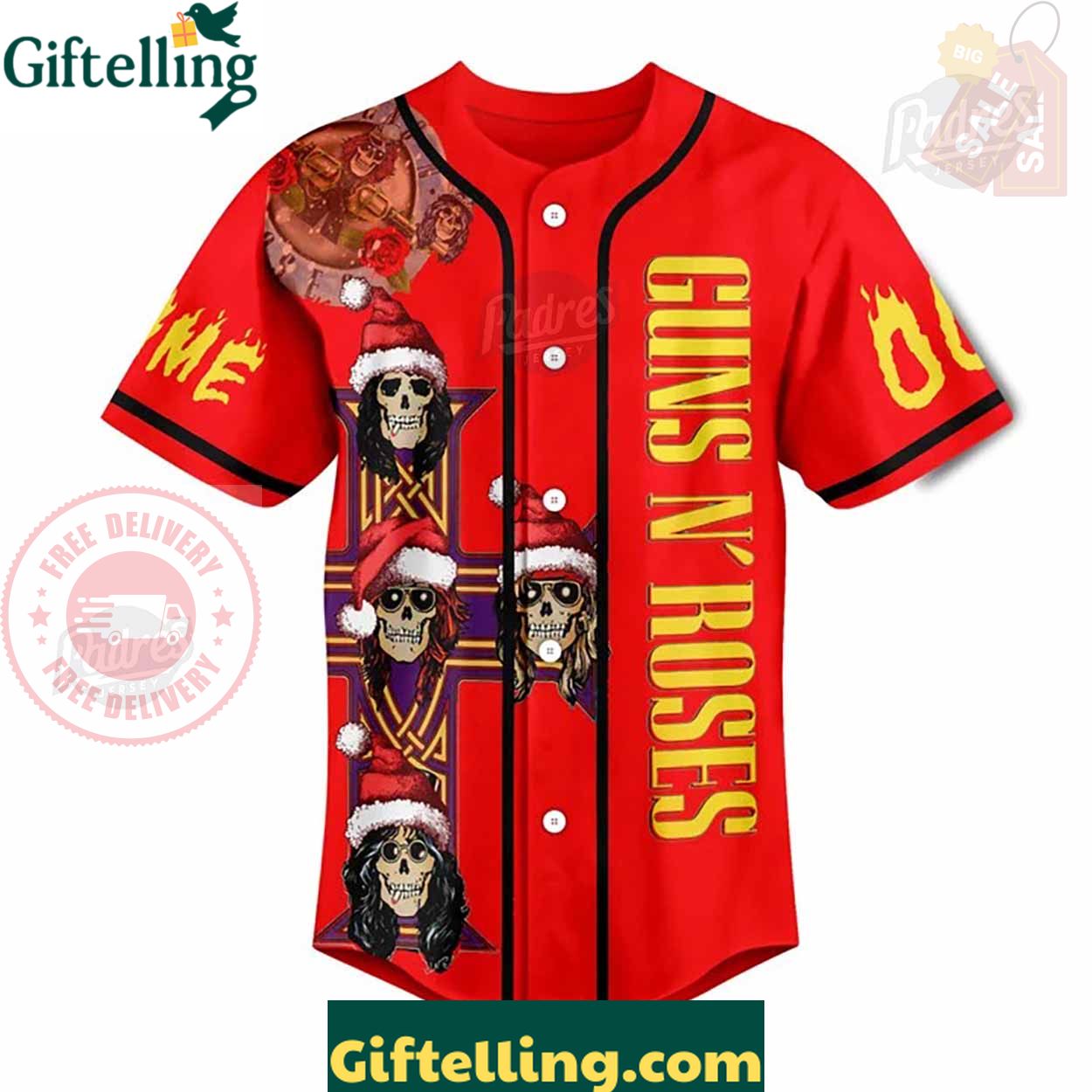 Order your Guns N’ Roses Skull Design Red Christmas Baseball Jersey at Giftelling! ❤️