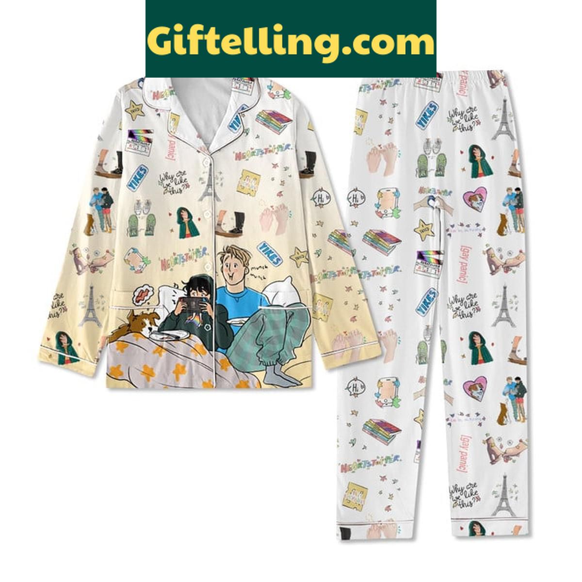 So what are you waiting for? Head over to Giftelling.com to get your hands on the Heartstopper Why Are We Like This Christmas Polyester Pajamas Set Yellow. Make this holiday season one to remember with these fun and cozy PJs. Order now and get ready to spread some holiday cheer!