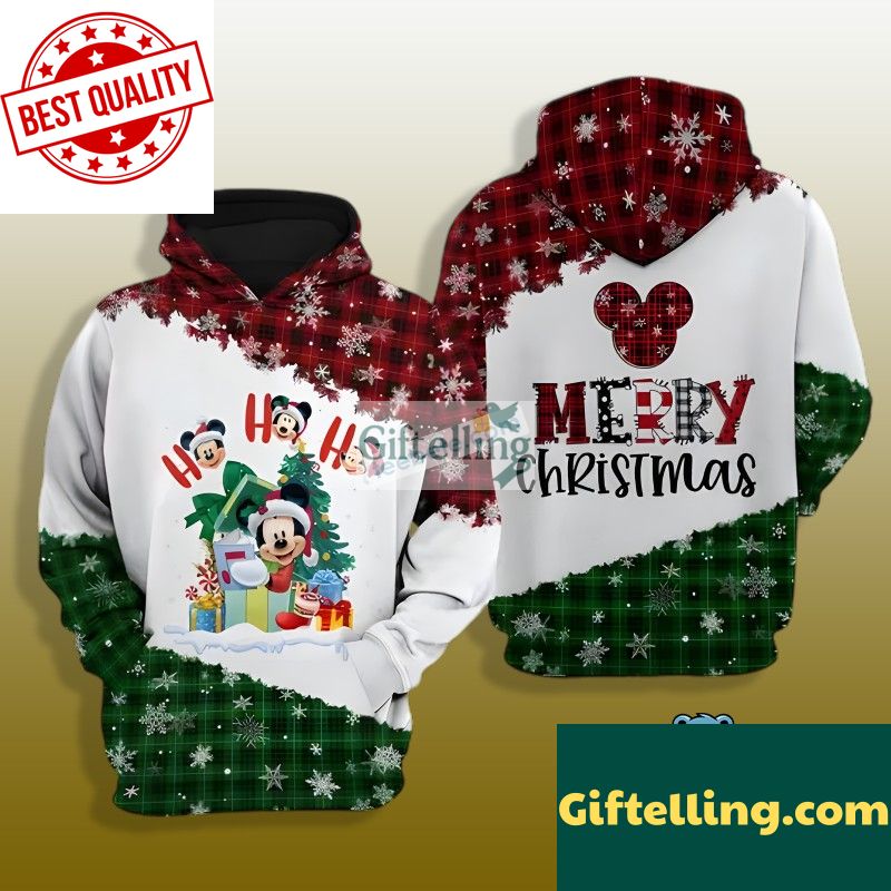 Order your Ho Ho Ho Merry Christmas Santa Mickey 3D Hoodie White Womens at Giftelling! ❤️