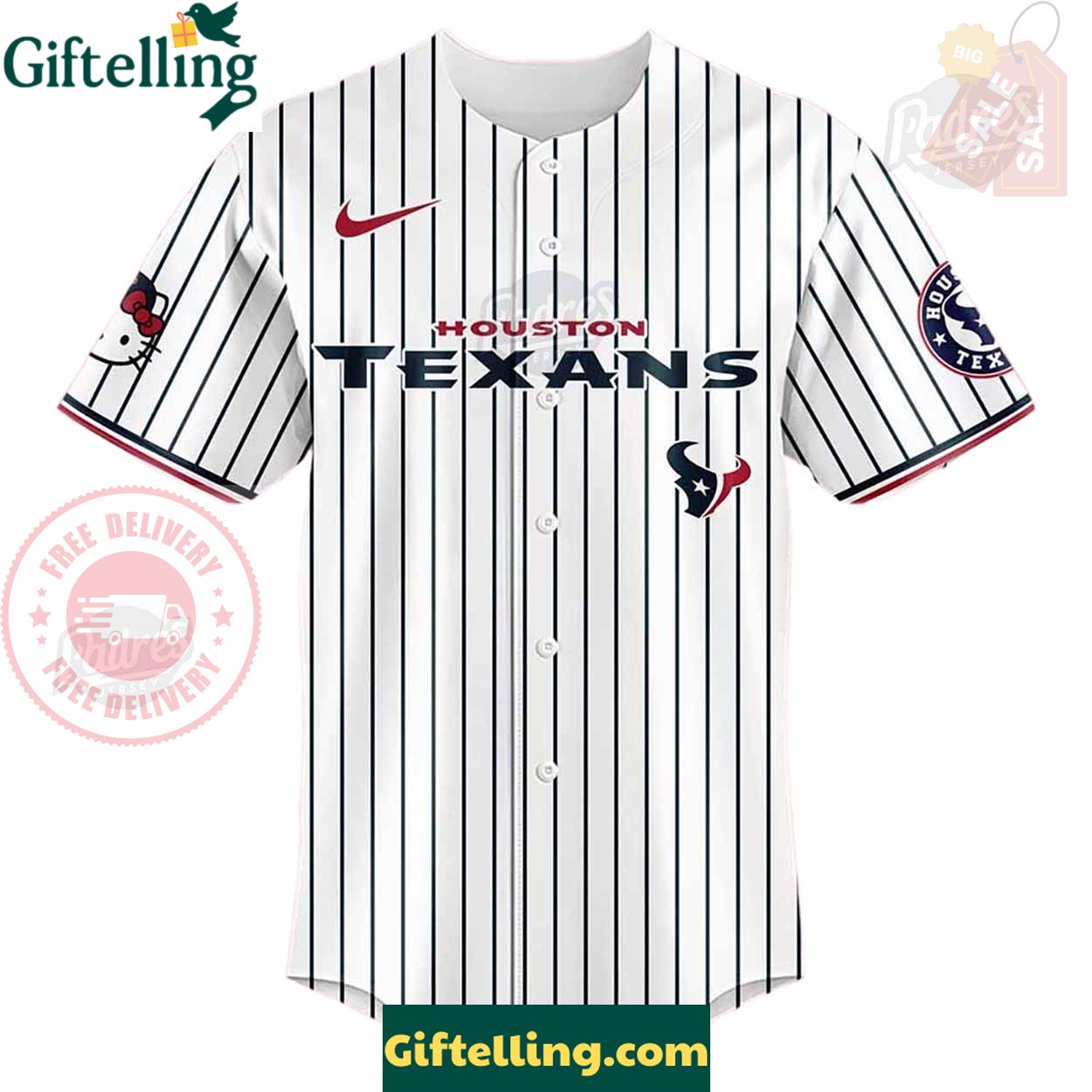 Order your Houston Texans Hello Kitty Baseball Jersey Outfit at Giftelling! ❤️