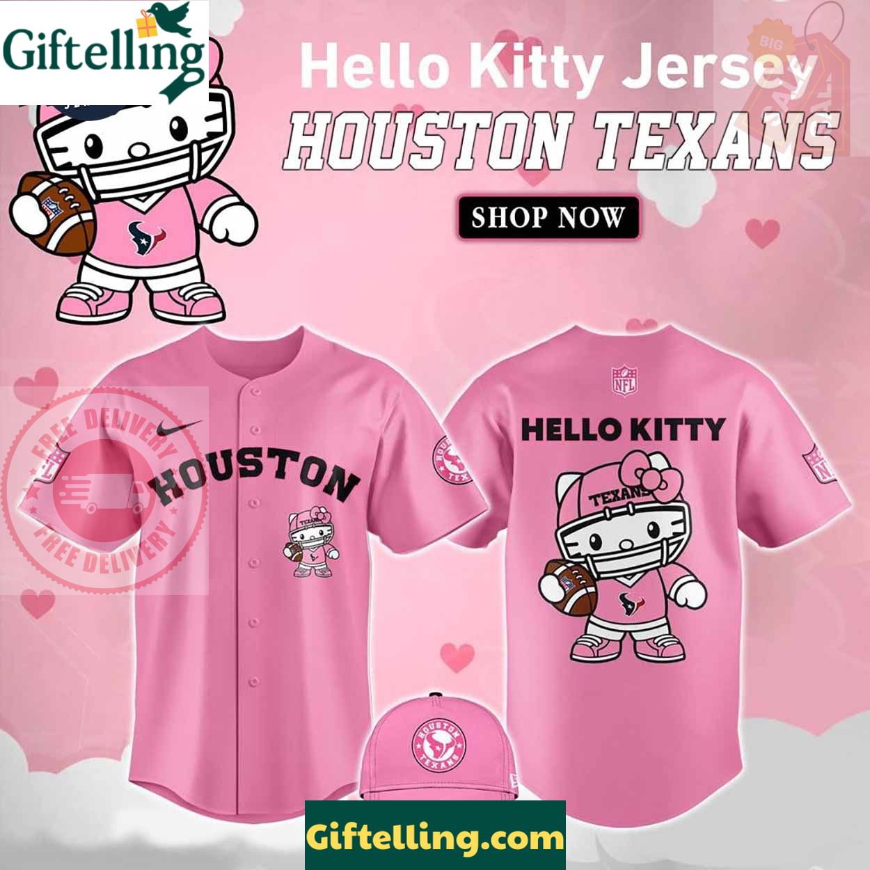 Houston Texans Hello Kitty Pink NFL Baseball Jersey