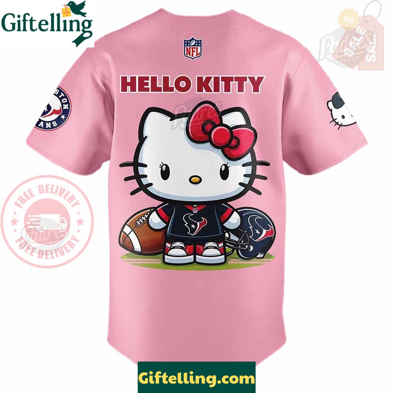 Order your Houston Texans x Hello Kitty Pink Baseball Jersey Outfit at Giftelling! ❤️