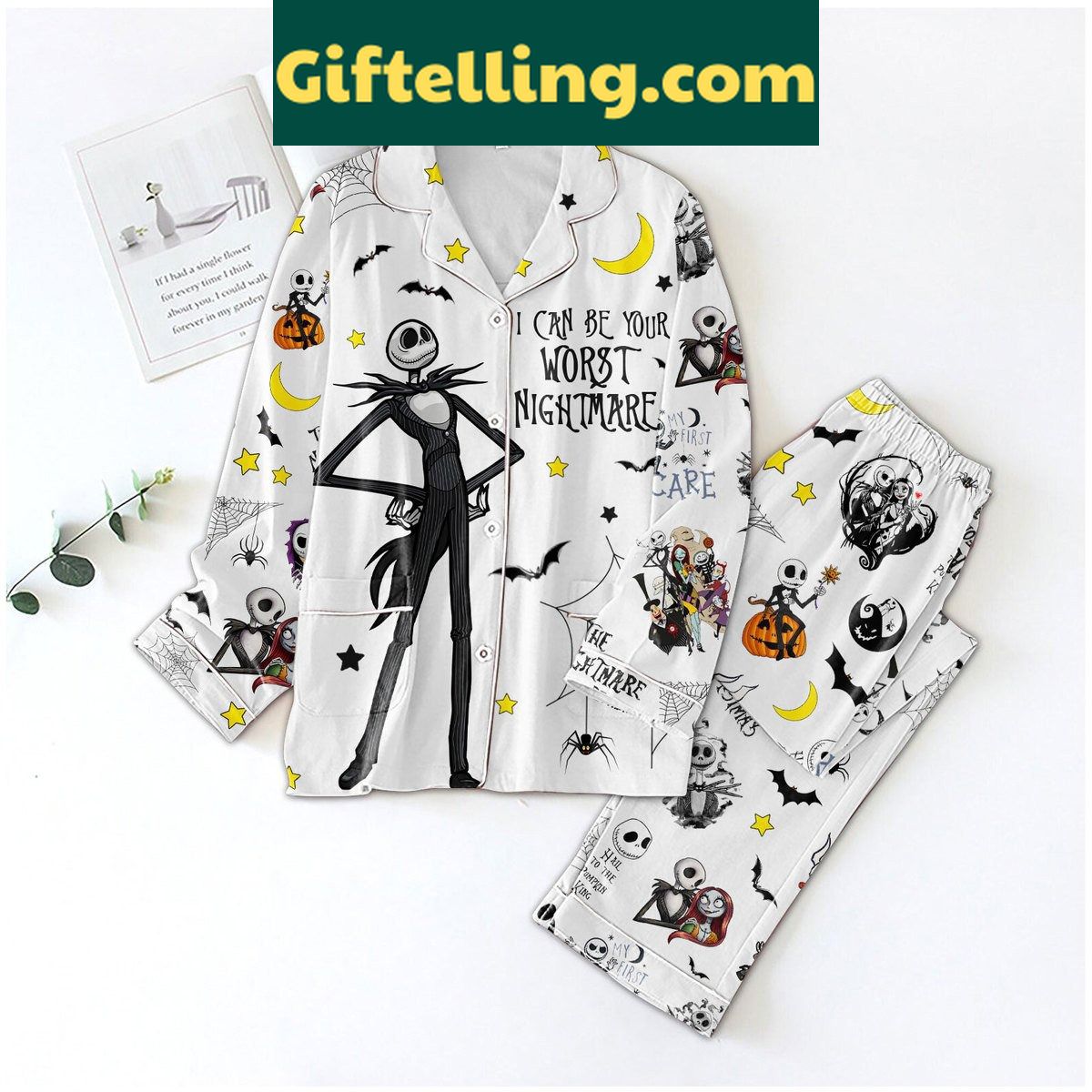 Jack Skellington I Can Be Your Worst Nightmare Pajamas Set for unisex, a spooky Nightmare Before Christmas inspired loungewear