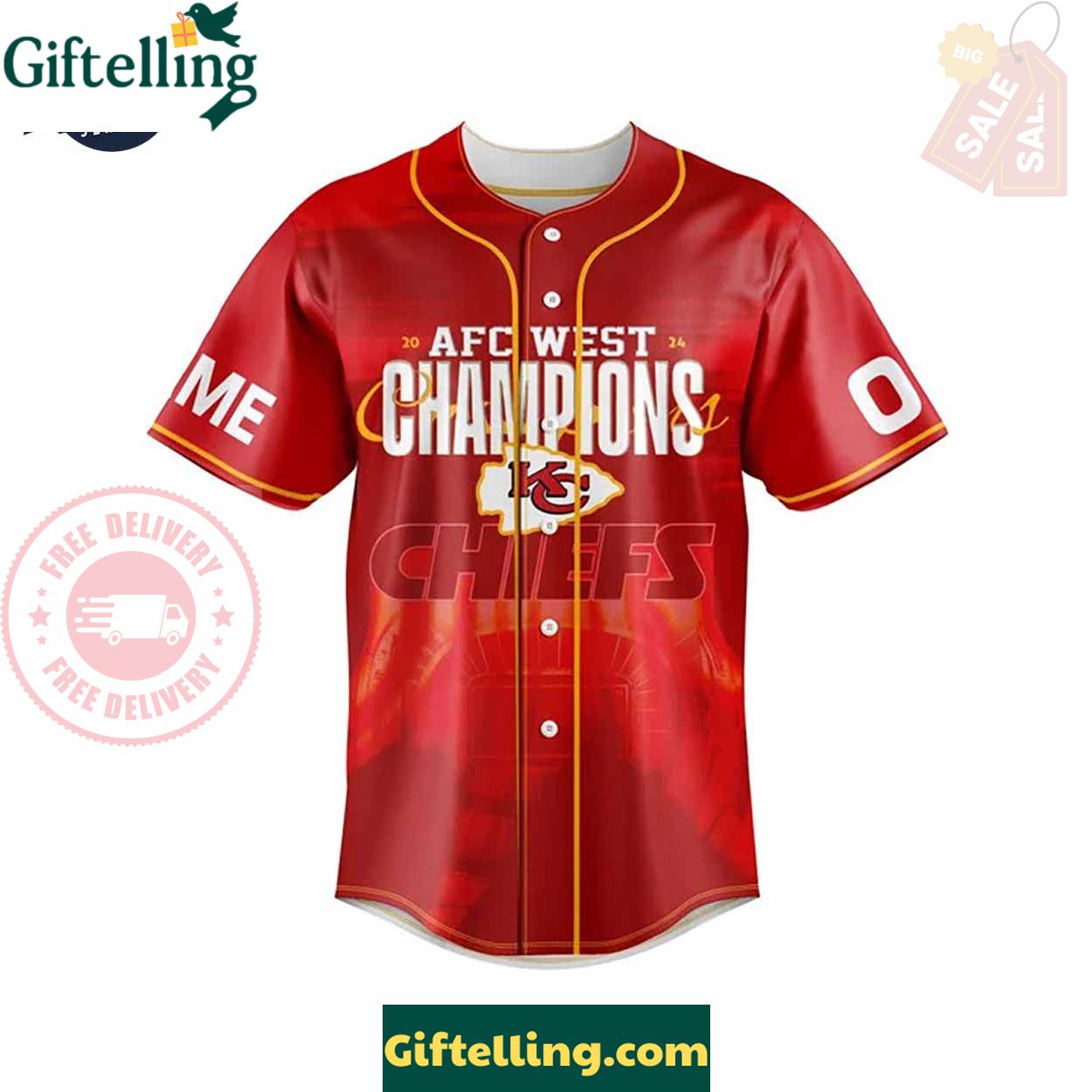 Order your Kansas City Chiefs AFC West Champions Baseball Jersey Outfit at Giftelling! ❤️